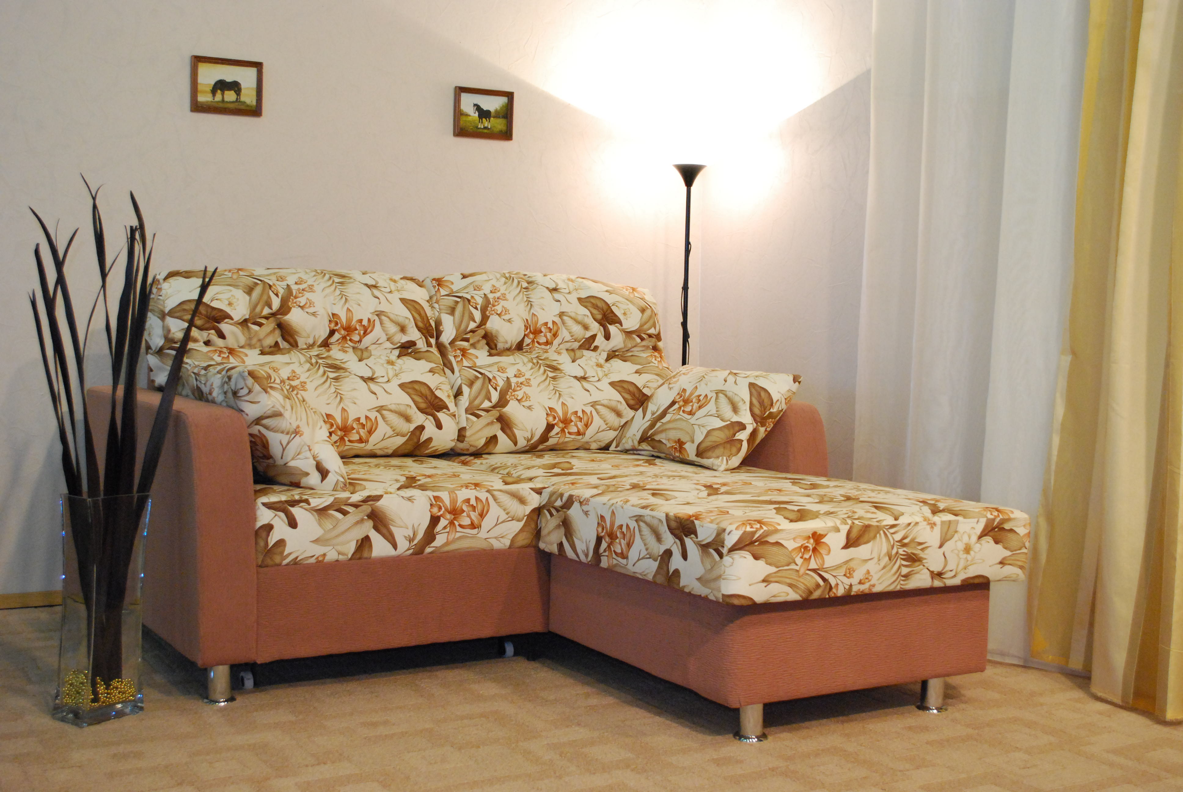 When buying, environmental friendliness is important. It is better to select natural wood, fabrics, leather, metal. At the base there should be good strong springs, and a tree is suitable as a frame. If the living room is combined with the kitchen, it is more practical to choose upholstered furniture with removable covers.