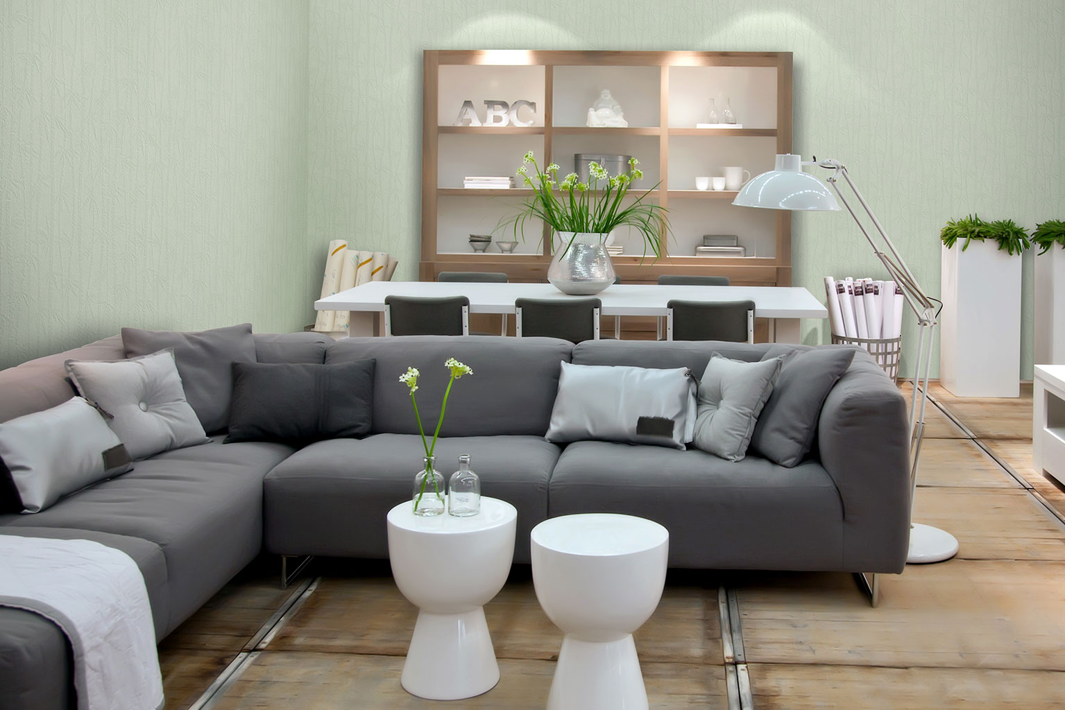If the walls are ornamented or painted in bright colors, the sofa, on the contrary, should be of a neutral color (white, beige, coffee, gray). Light upholstery visually makes the structure easier, but this is not the best option for living rooms combined with the kitchen, all spots will be immediately visible on the surface.
