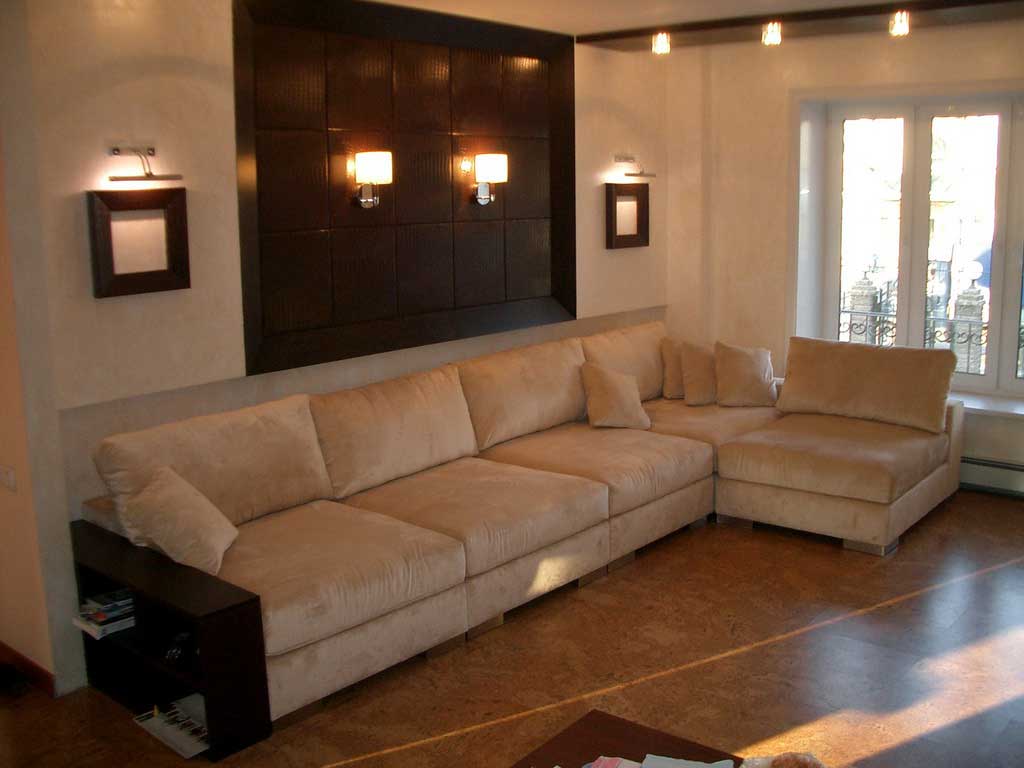 Large models are suitable for spacious living rooms or studio apartments. If a large family lives in the house or guests often visit, this is the most suitable option for the hall. Small furniture should be selected in small rooms, often the living area in this case is combined with the bedroom.Sometimes small sofas are placed in the kitchen in the dining area.