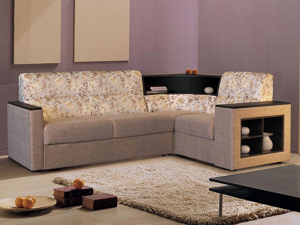 There are designs already equipped with a compact coffee or coffee table. The more functions the sofa has, the more space you can save. Convenient models with open shelves where you can put books, vases, home plants, souvenirs, photo frames, etc. A sofa with a built-in bar will definitely impress guests.