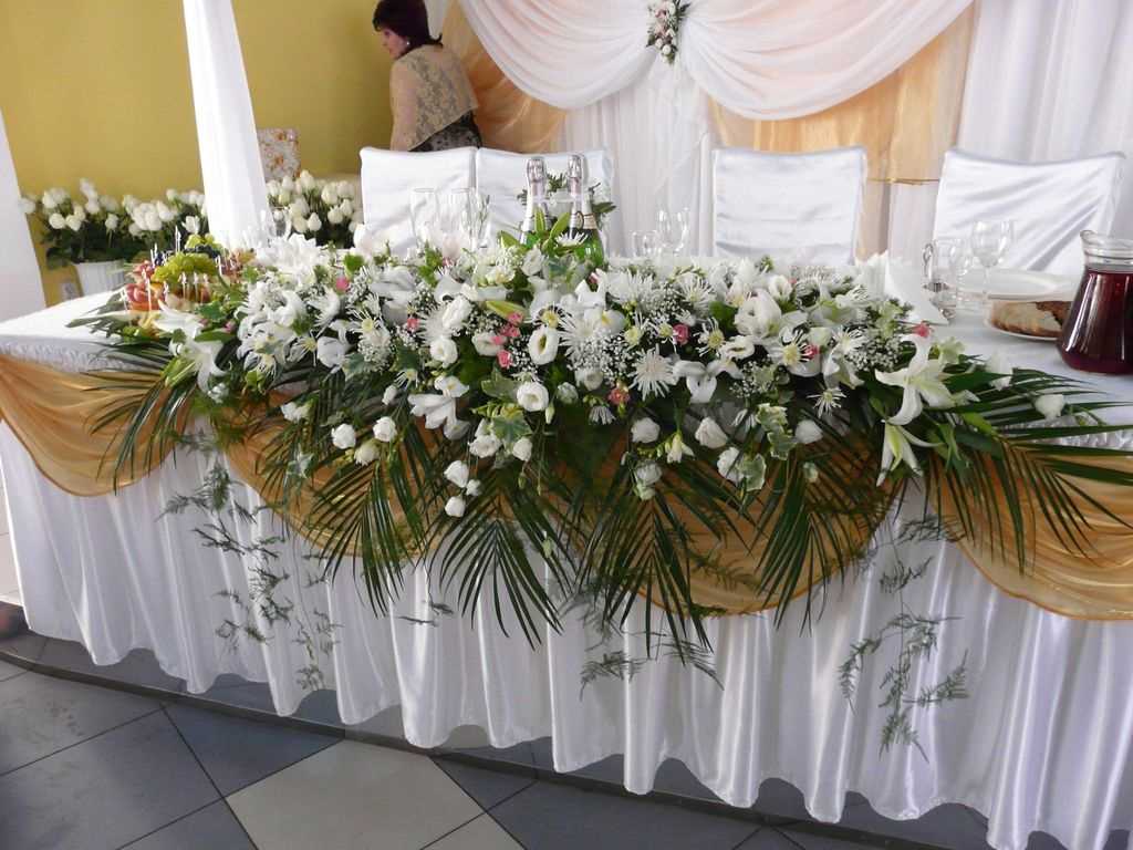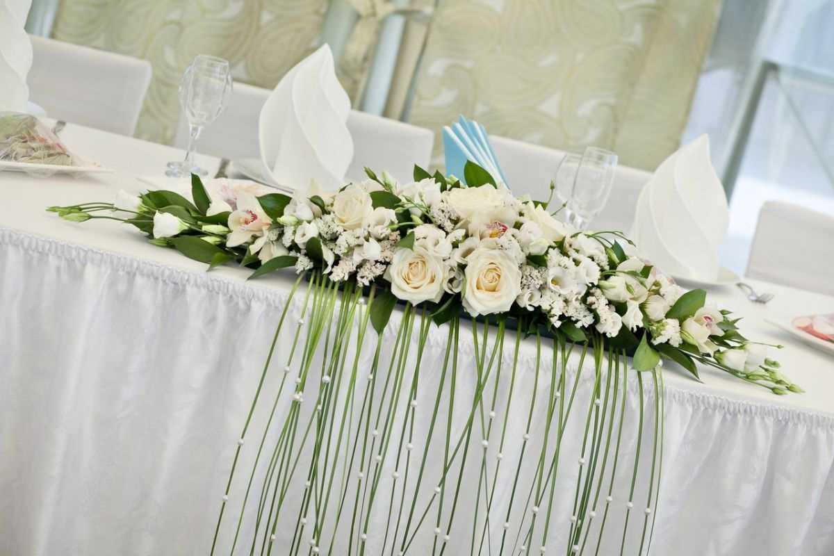 Important! Do not overload the table with an abundance of flower garlands, with the exception of the newlyweds table. Leave room for gourmet dishes decorated with cooks and pastry chefs for the benefit of guests.
