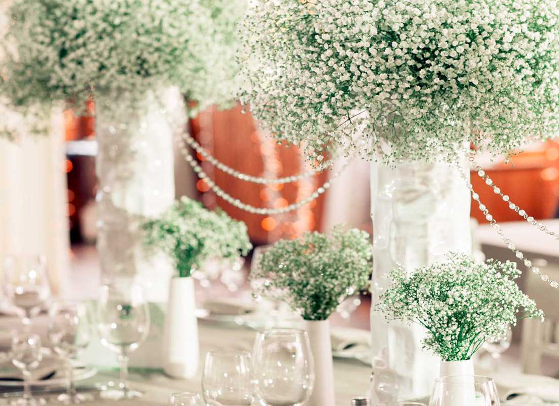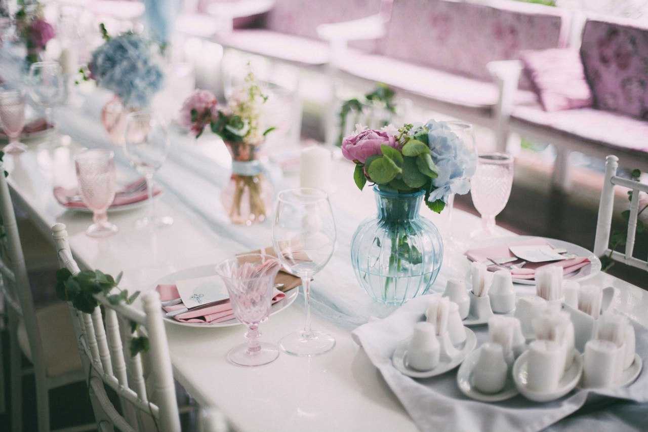 - Track the size of bouquets and flower arrangements on the tables. Their optimal height is no higher than 30 cm.