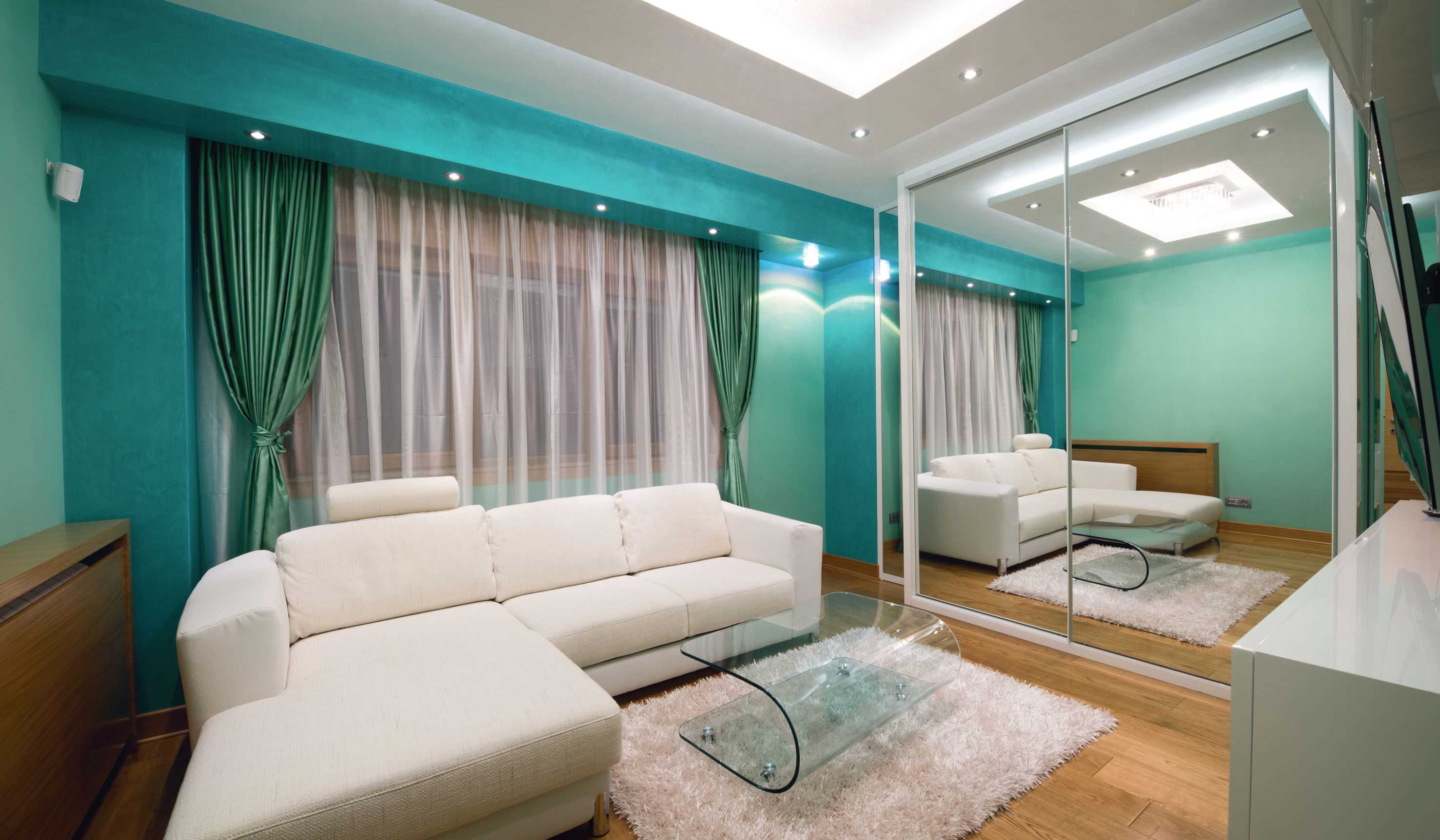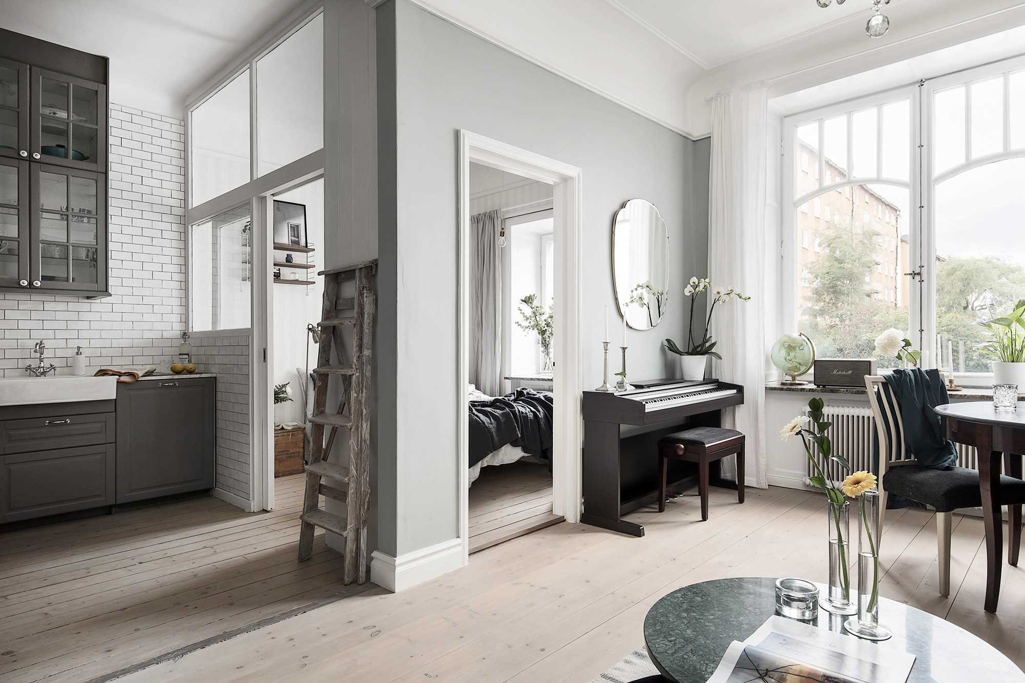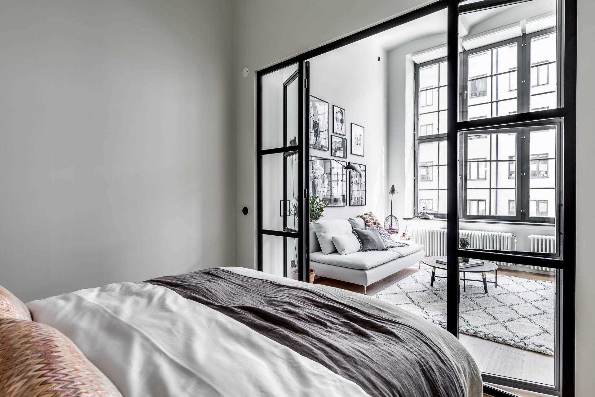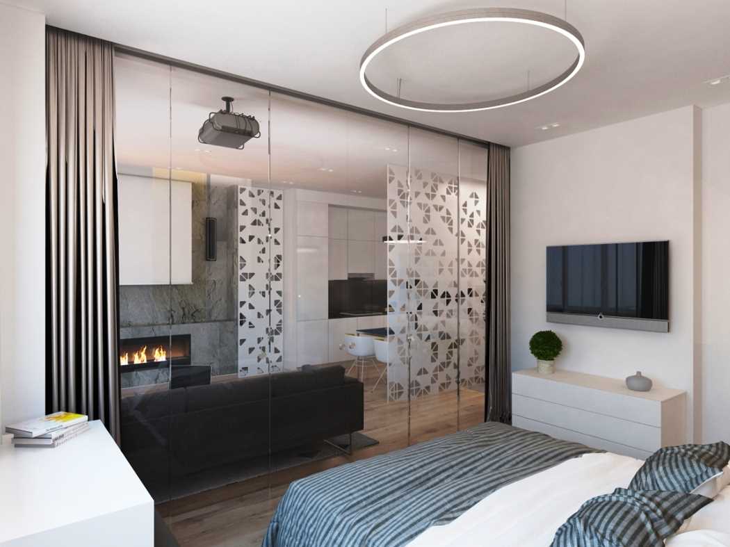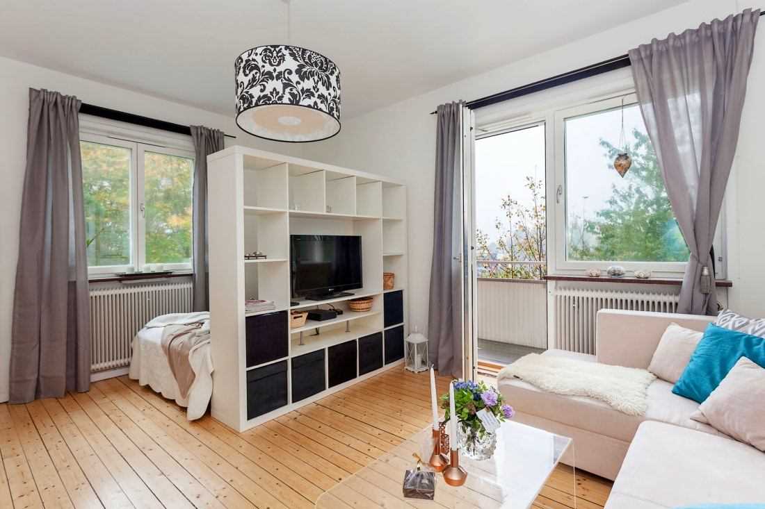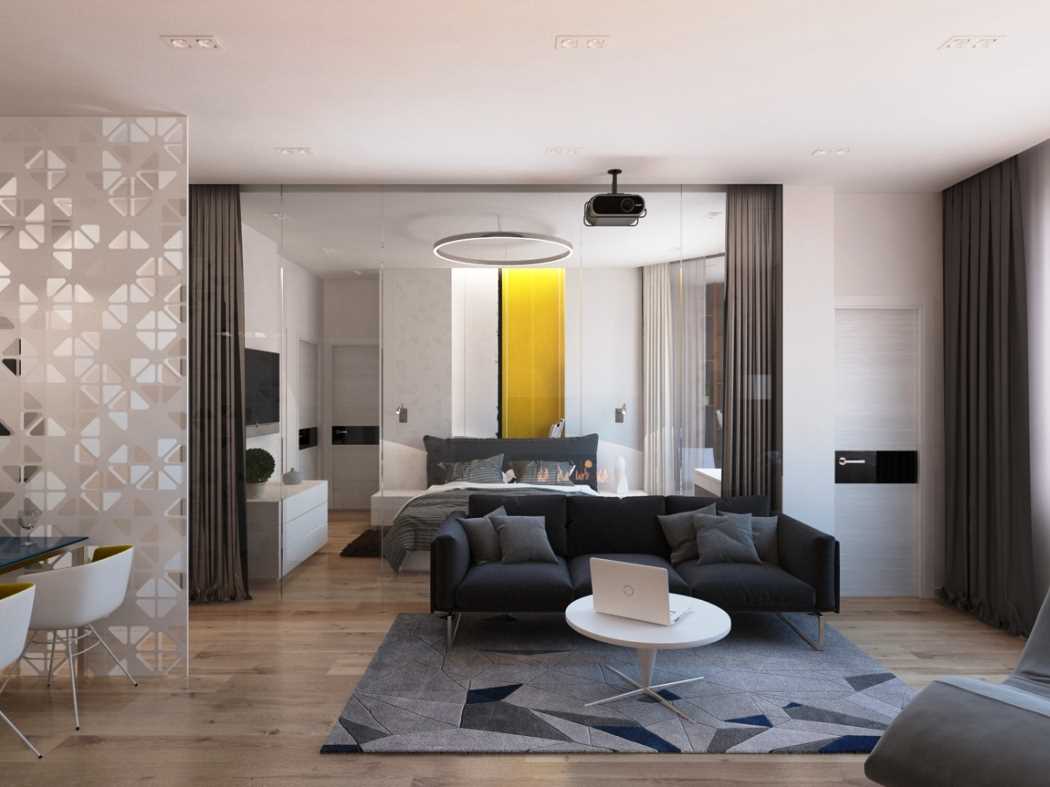 If you are lucky with the dimensions of the living room, then you can easily install blind partitions. Especially this option is ideal for rooms with windows on adjacent walls. This makes it possible to complete the interior of the bedroom and living room in a completely different style or theme.
