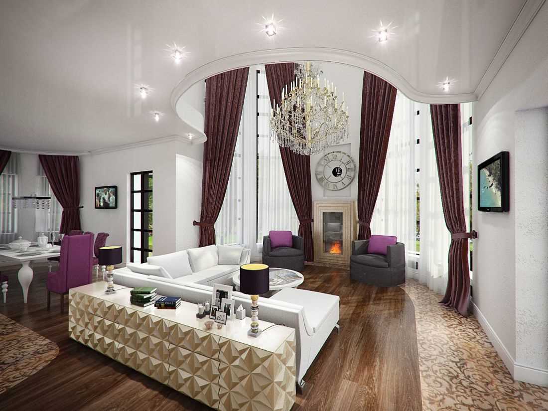 Since two functional requirements are combined in one room at once - a cozy place to relax and a spacious, comfortable living room, you have to choose design styles that would combine with each other.
