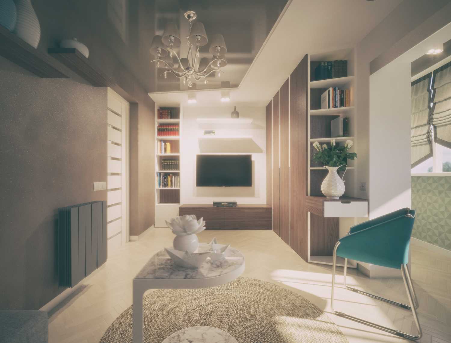 Wardrobe, chest of drawers, etc. you need to choose according to the design project. For example, such furniture can also perform a dividing function, being properly placed. It can be modular shelves, built-in wardrobes. With limited space, you should pay attention to transforming furniture, which does not take up much space when assembled. Moreover, now there is a large selection of interesting design solutions for tables for various purposes - from dining and coffee to workers.