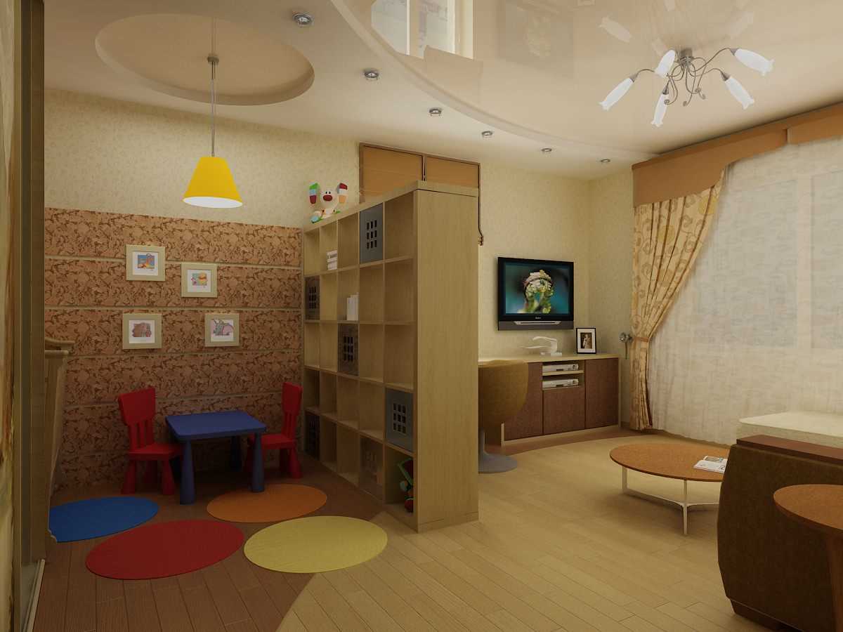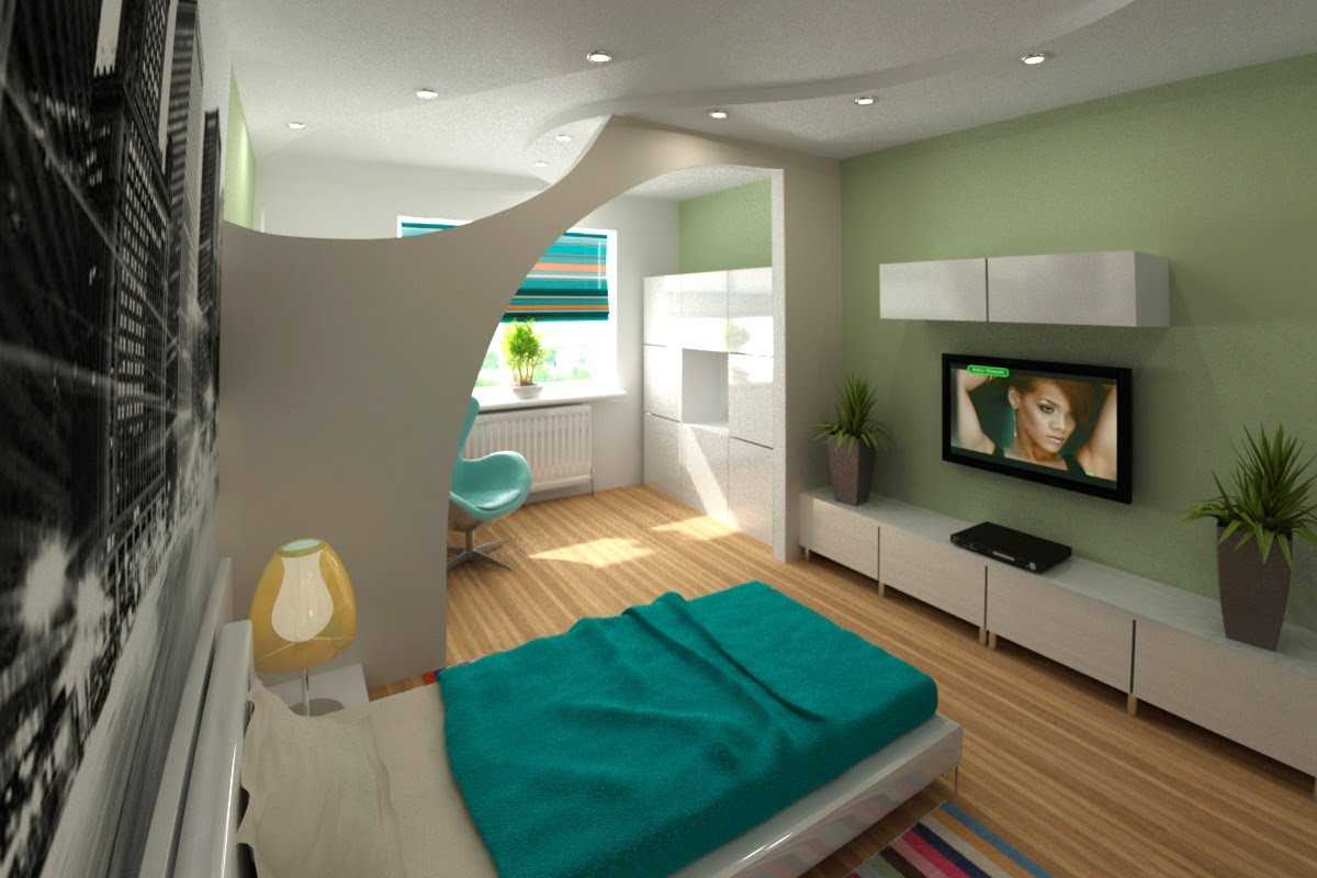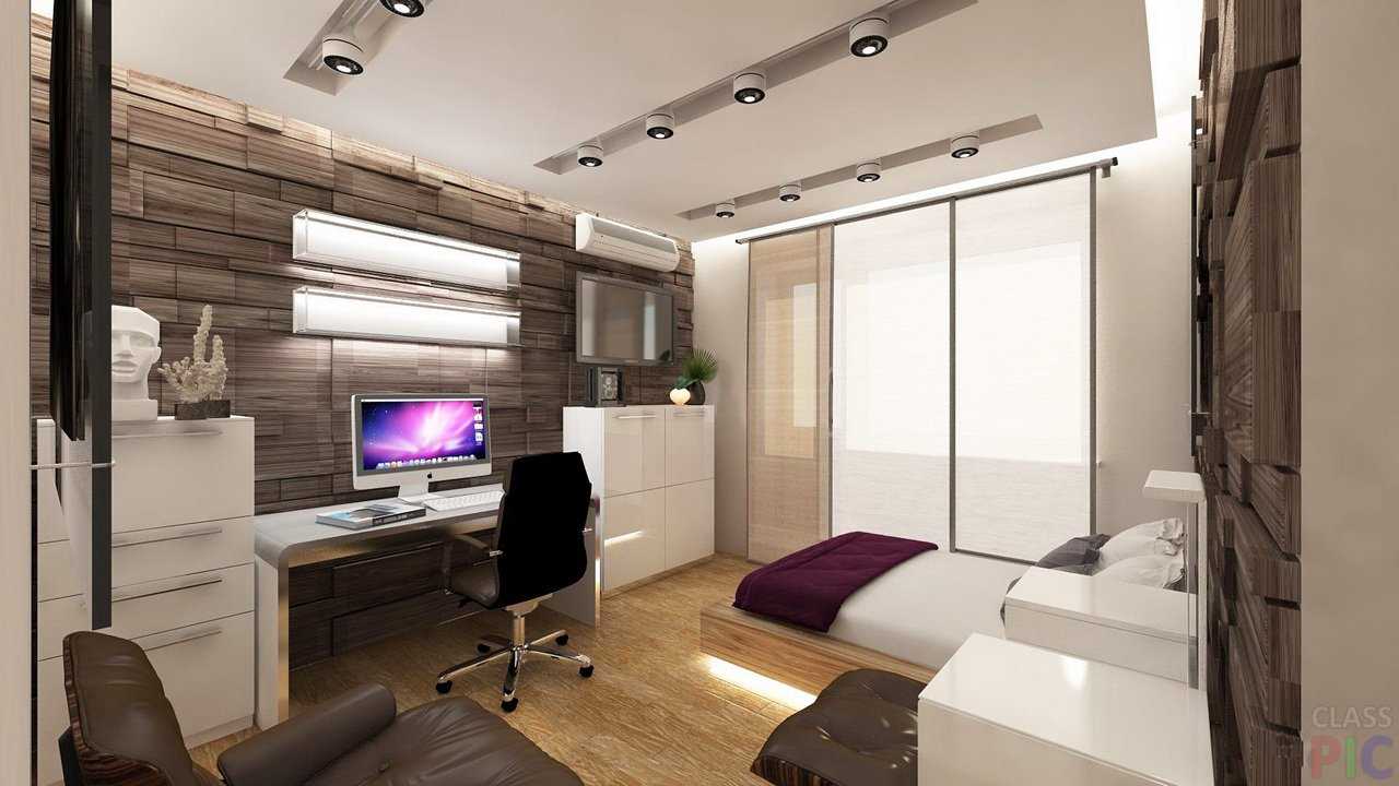 The interior design in the combined room is faced with the task of separating the resting place from the working area and most importantly, this must be done correctly.