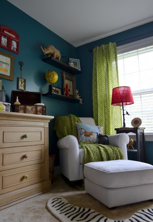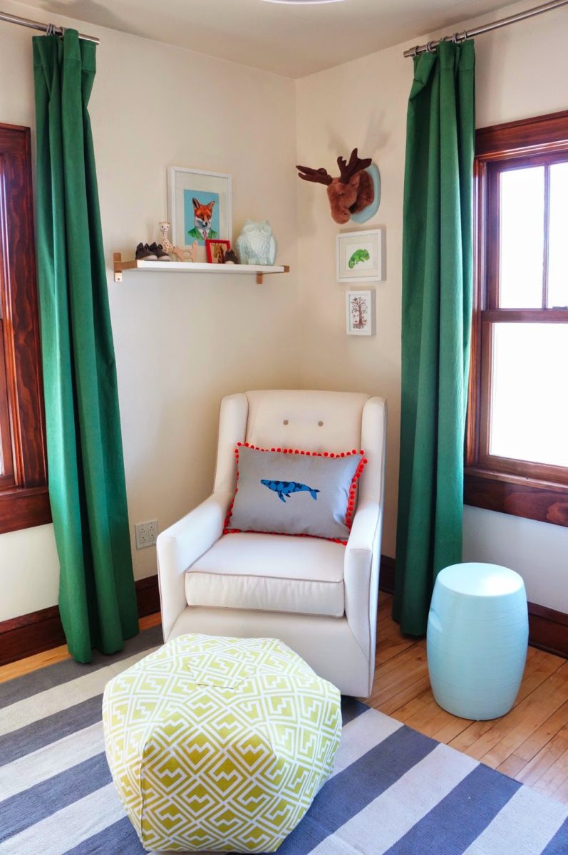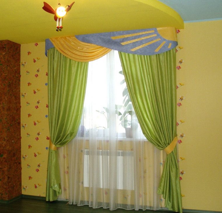 - Children’s. For a child’s bedroom, the green color is great. His ability to create a calm but energetic atmosphere contributes to the development of thought processes and better learning. For the children's room, you can use green curtains with funny patterns that the kid will like.