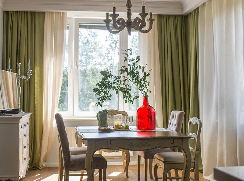 Using green curtains in the interior, it must be borne in mind that this color has a lot of shades, and a wrong tone can ruin a design idea.
