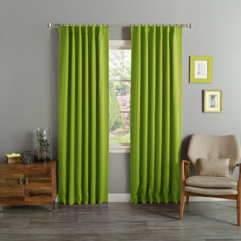 What room is green curtains best for?