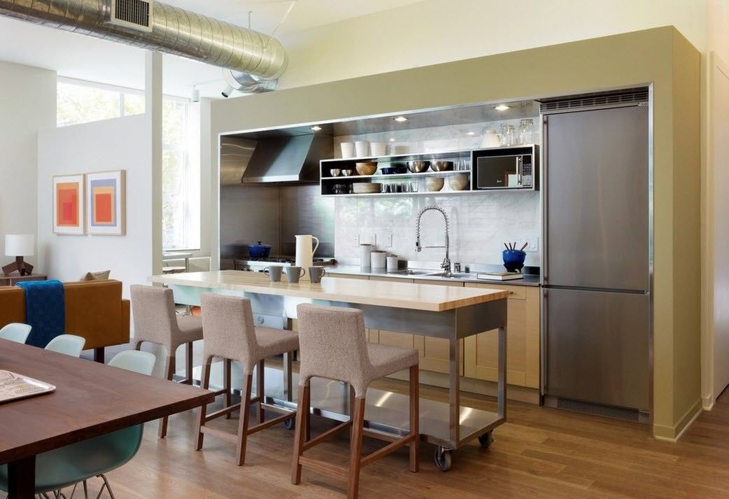 Properly equipped interior of a studio apartment not only will cause emotions of admiration among the guests at home, but will also improve the condition and mood of all households. All this is due to the fact that the additional space will become a place to store parts that previously cluttered the house.