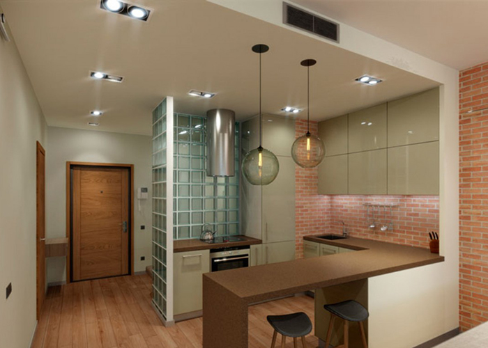 Arrangement one-room apartment with a recess in the wall - a great alternative to a studio apartment. When the dimensions of the partition allow, it’s actually possible to even arrange a cooking area, otherwise there is only enough space for a bar, work surface and mini-sink.