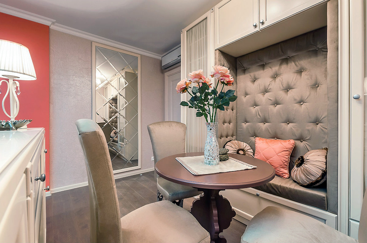 The sensible design of a one-room apartment with a niche will allow you to arrange furniture so that each item in the room has its own place, and each zone has a purpose.