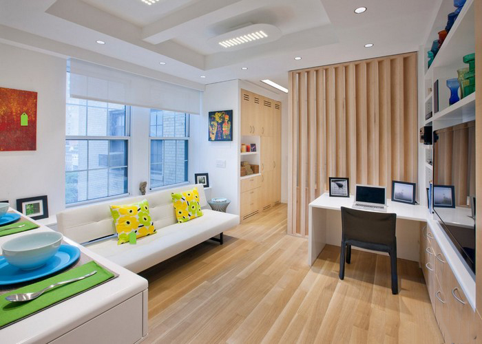 Often one-room apartment enough for a comfortable stay of one or two people, but if you properly arrange special formations in the form of partitions, niches, you can create a cozy atmosphere for a family of three or four households.