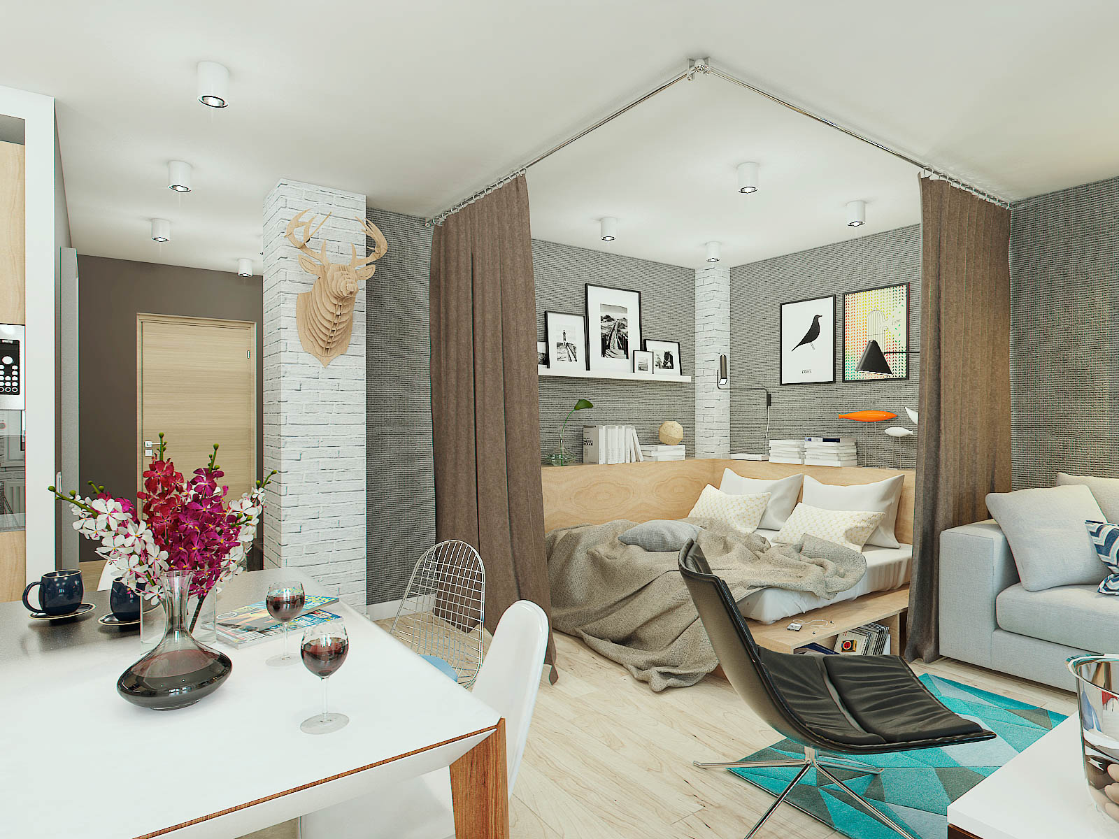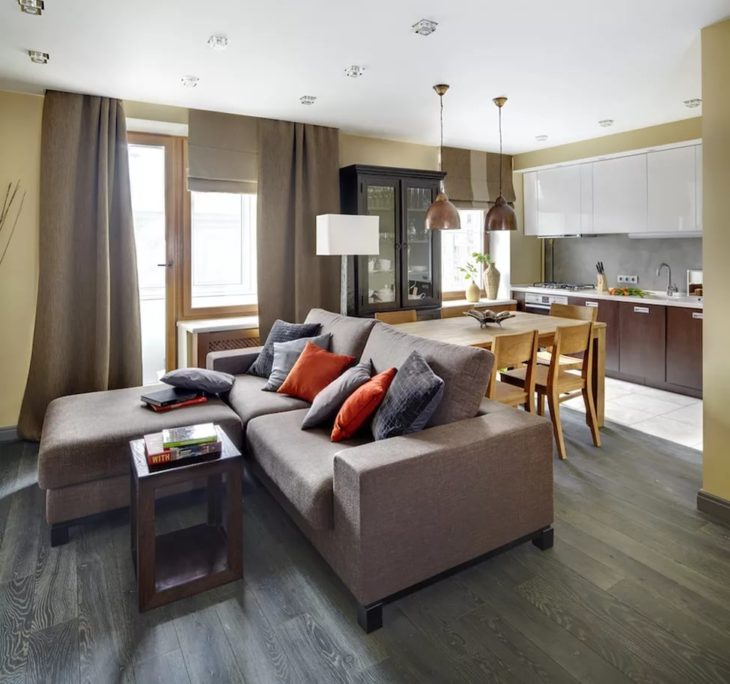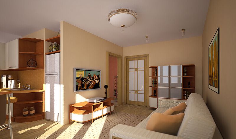 This case is complicated by the small area in which it is necessary to accommodate several functional areas. Therefore, it is necessary to think through every detail. Often do redevelopment, connecting the kitchen and living room. This implies a change in the location of communications, which must be taken into account in advance.
