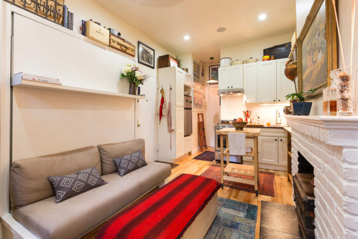 Multifunctional furniture is the salvation for a small apartment. It looks like ordinary storage cabinets.