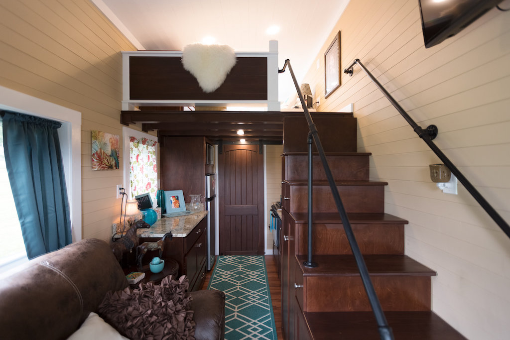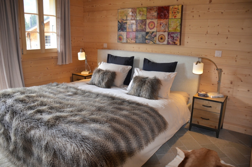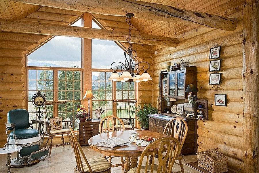 The chalet-style interior is well suited for a spacious wooden house.
