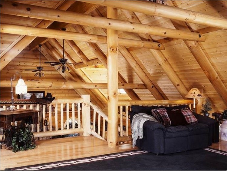 - During the construction of structures from logs, the internal layout is made of non-standard performance. Vaulted ceilings, massive ceiling beams, as well as stairs to the second floor can be made of solid wood, which previously removed the bark. Create a fabulous room decoration.
