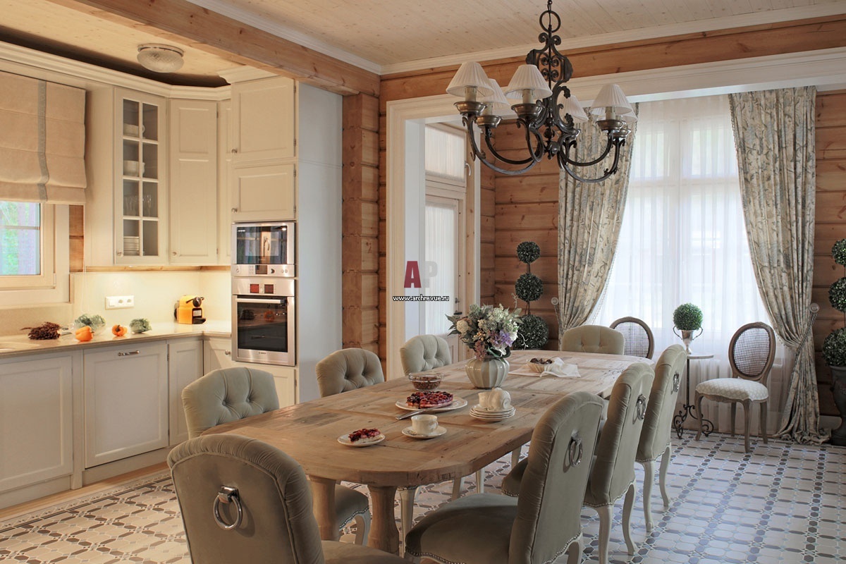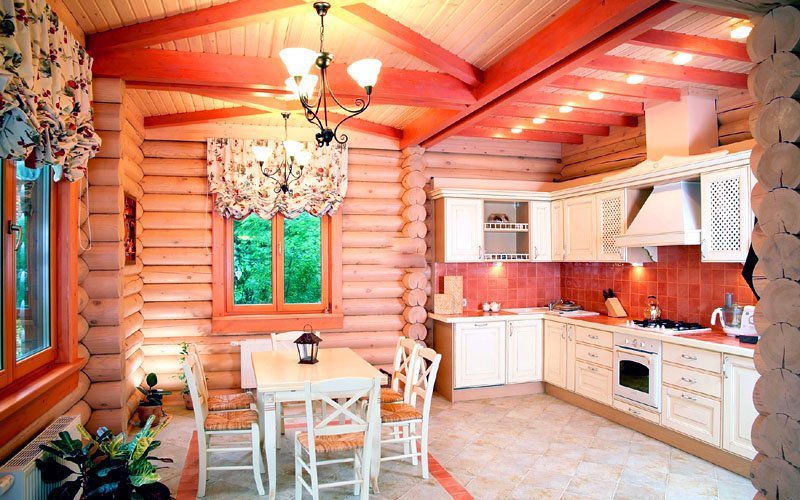 Retro style, country or provence is well suited for the kitchen in a house made of lumber