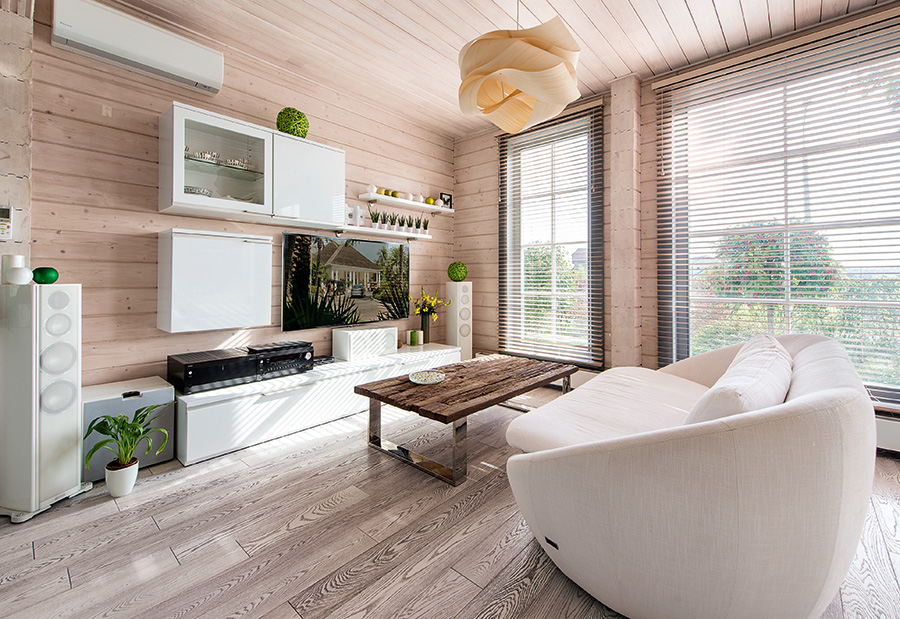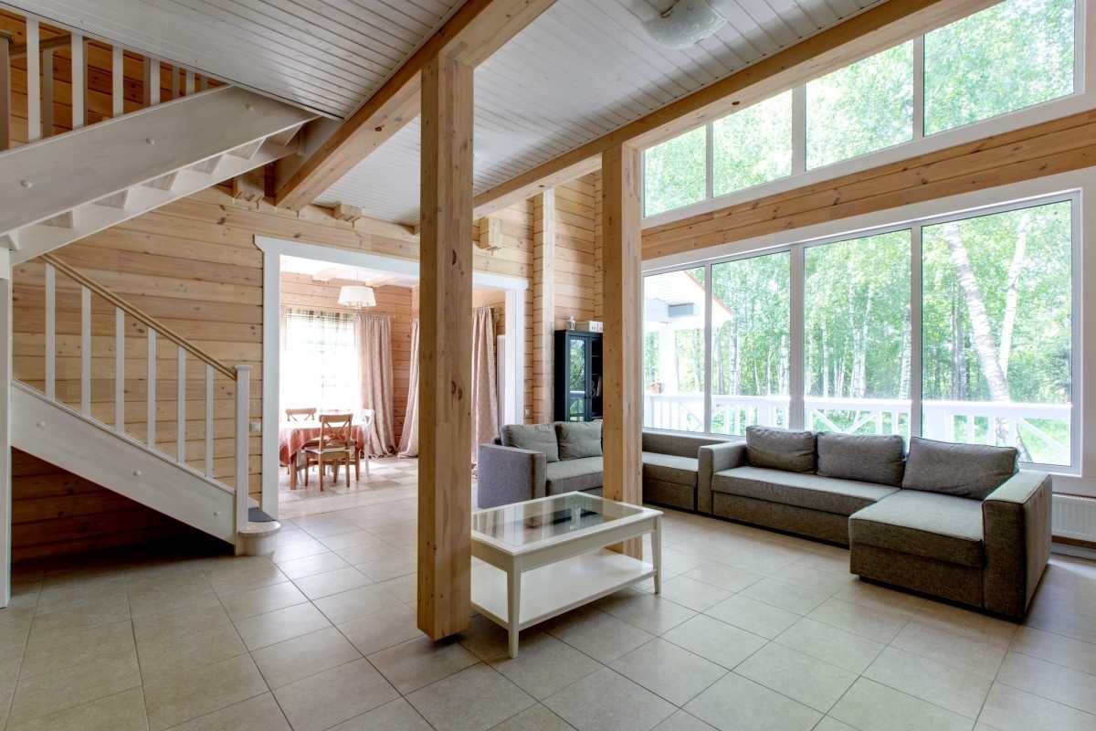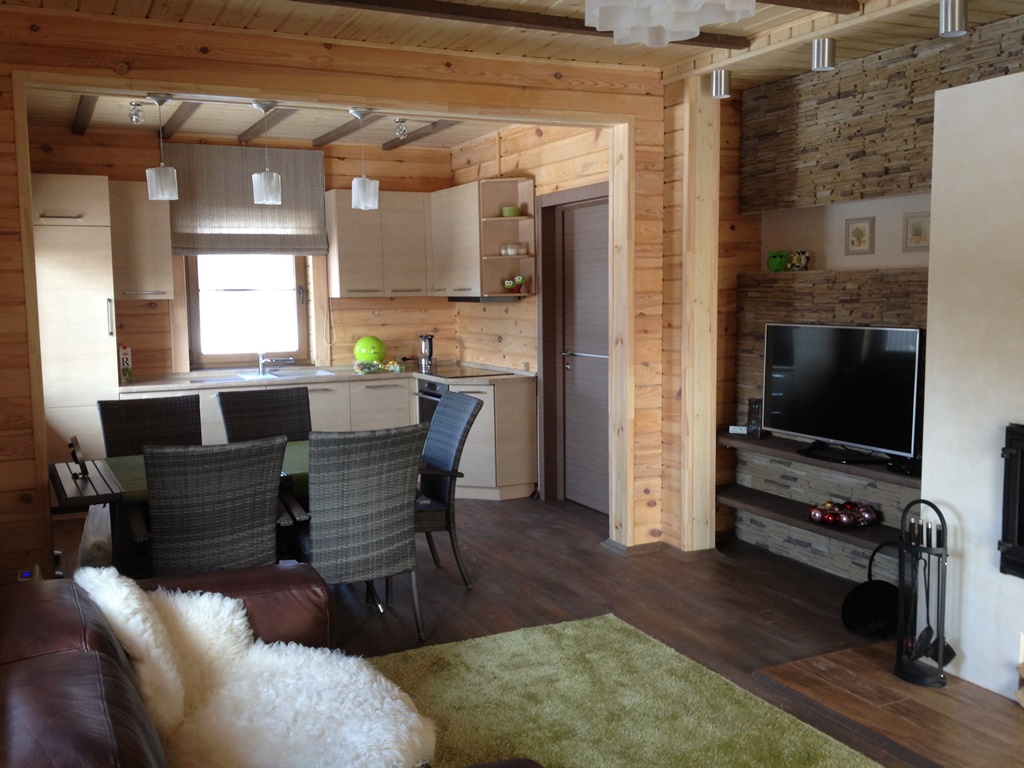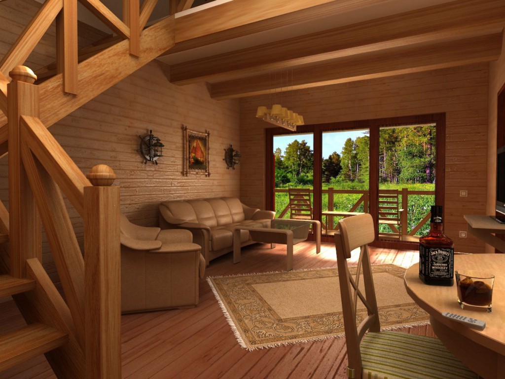The interior of the house made of timber is very environmentally friendly. This is the main advantage of such a structure. With the right step-by-step approach, it will be possible to organically diversify the rooms of the house. All shortcomings easily turn into advantages.