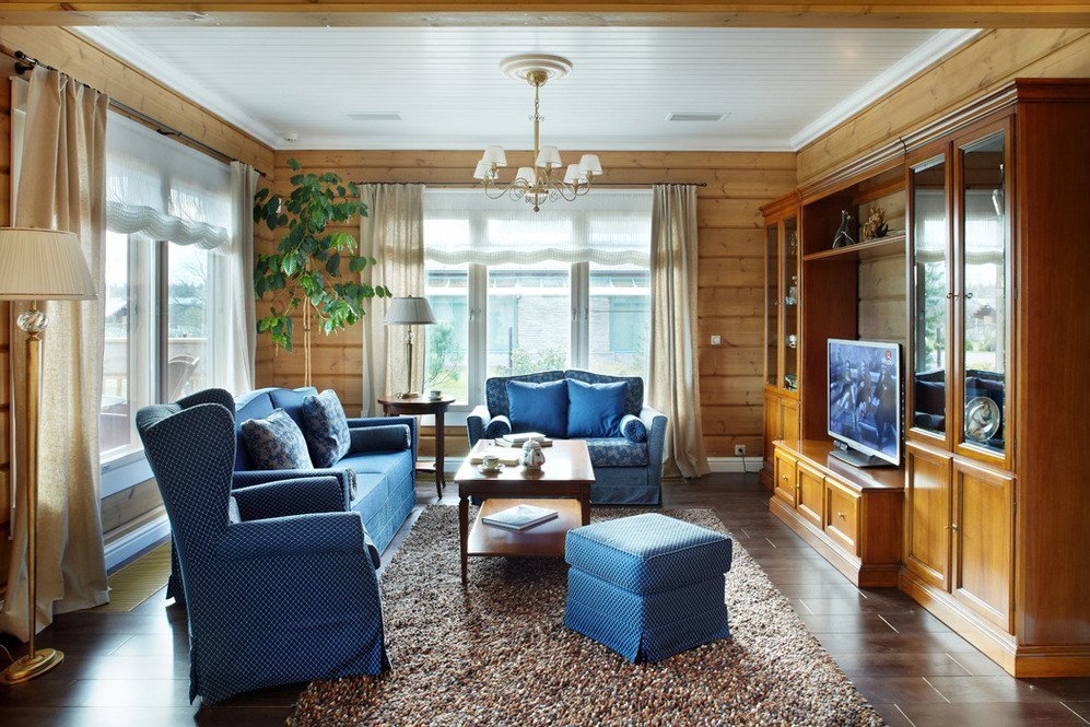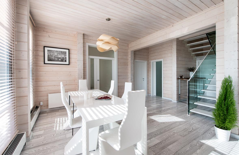 With a competent approach, the interior of a house made of glued beams is a source of positive emotions and calm
