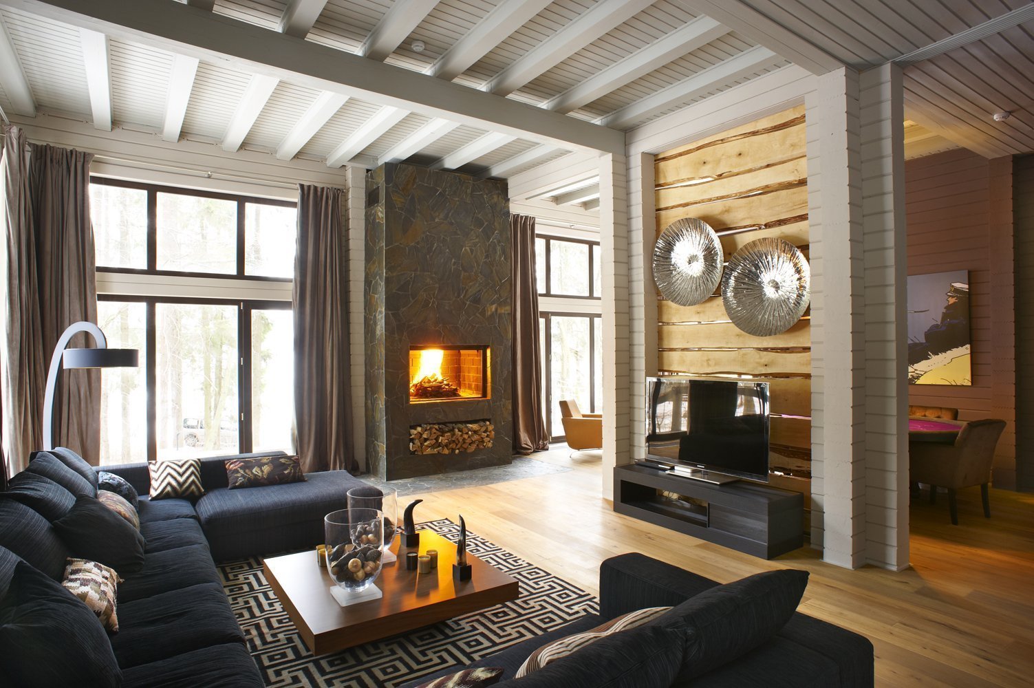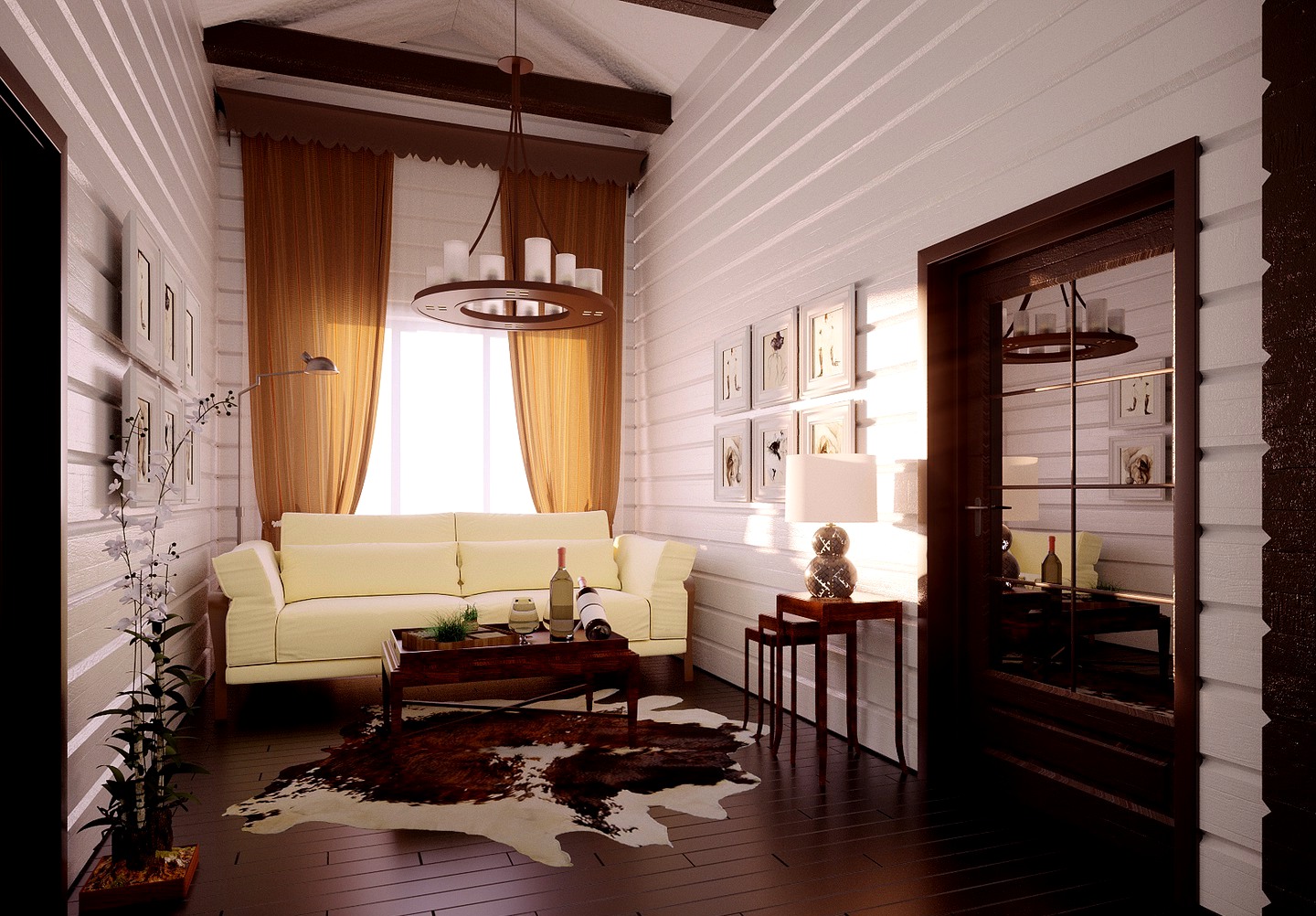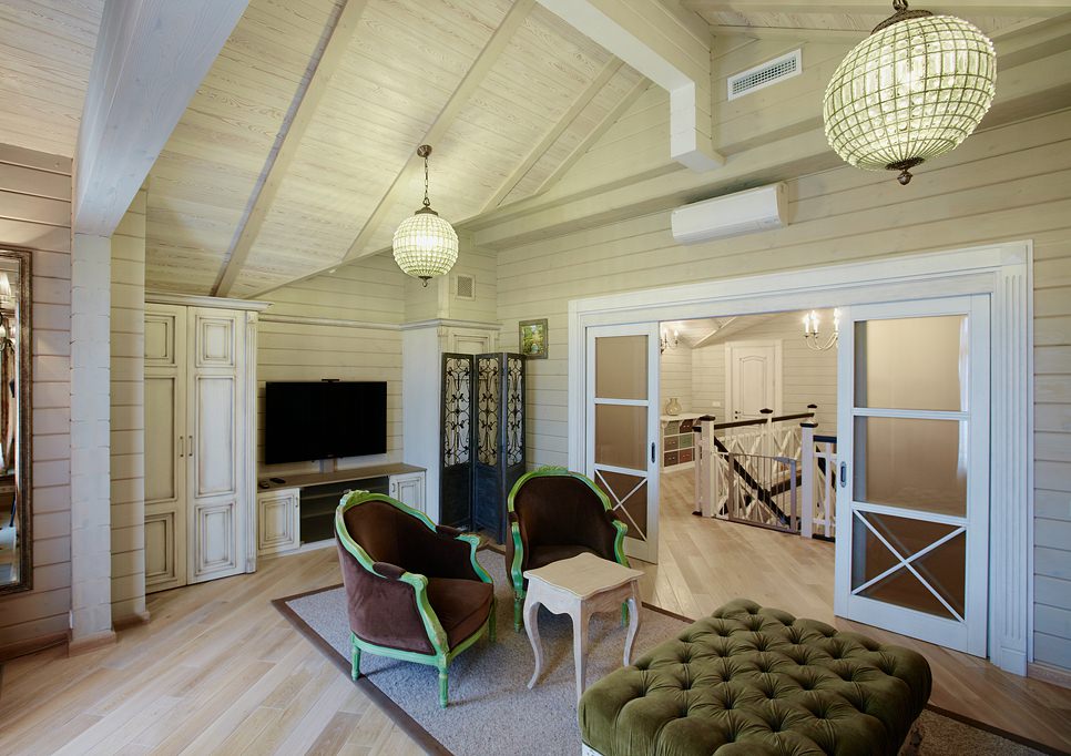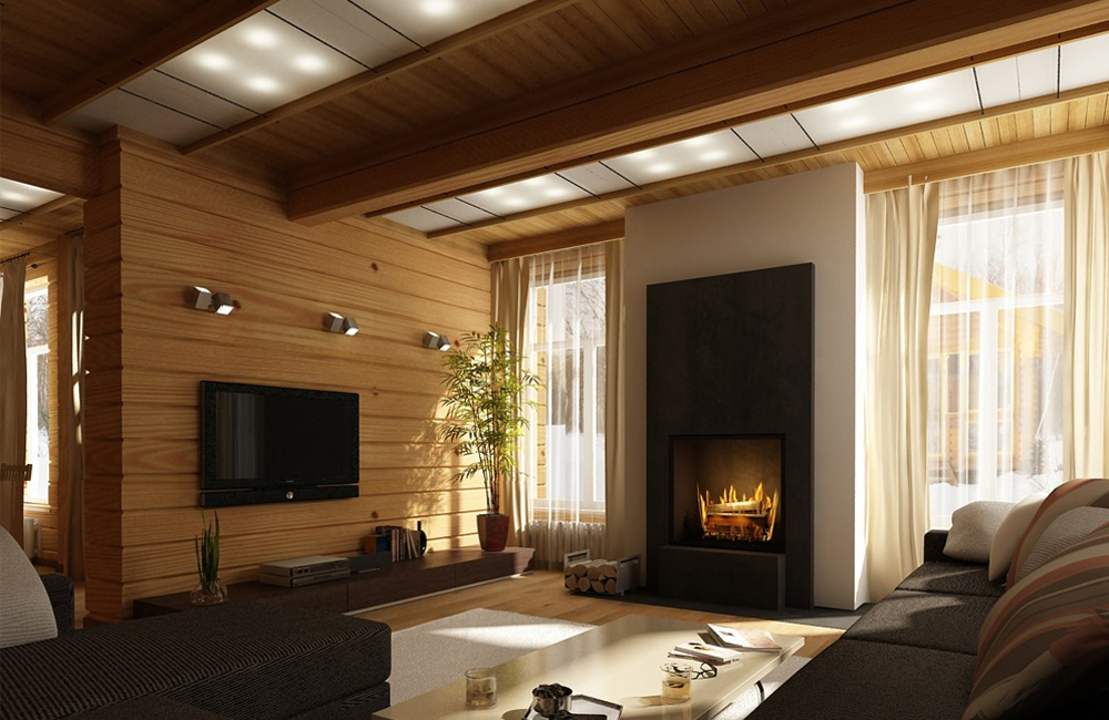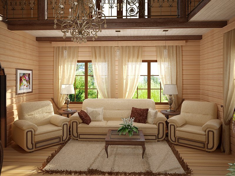 How to decorate the interior of the house from glued beams