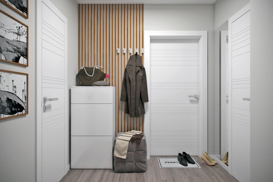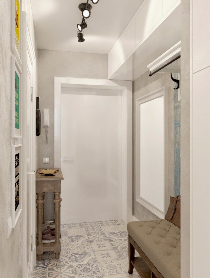 All that can be done without reconstruction is to remove the cabinet furniture, visually separating the “hallway” with modern compact hangers and shoe racks. Use open and closed mezzanines - the upper planes are usually not involved in the rational distribution of space.