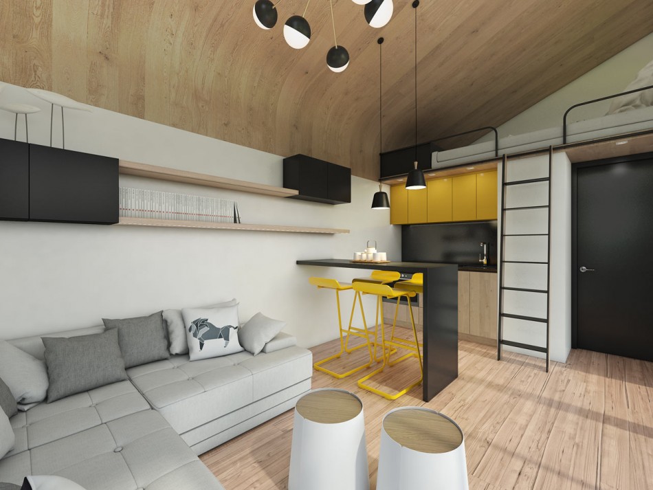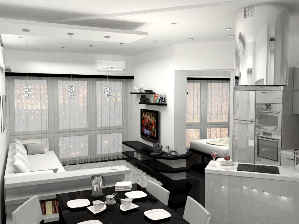 For a studio type apartment, bar counters that perform the function of zoning between the kitchen and the living room or dining room remain relevant. Purchase equipment with a minimum noise threshold, using at such a time so as not to disturb others.