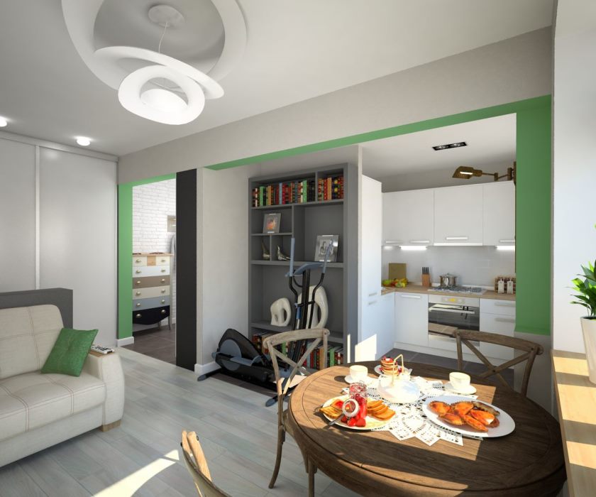 | 1. | Competent functional zoning | Divide the "odnushka" into places for sleeping adults and children, work and guest areas, common space. |