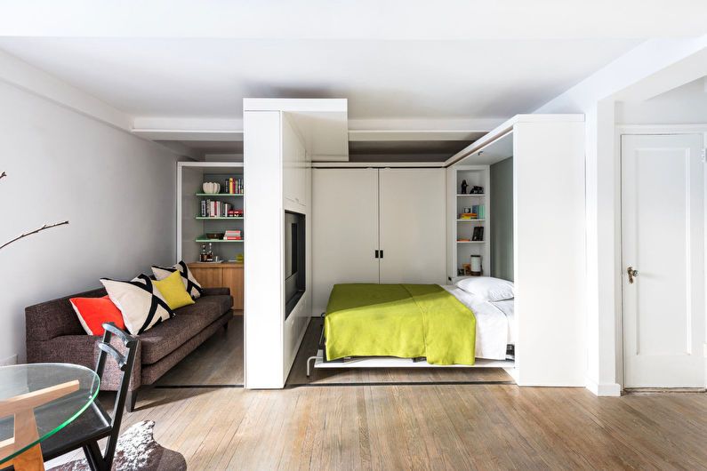 Space saving should be envisaged even at the planning and design stage of a one-room apartment when repairs are started. The transformation of the apartment should begin with a "clean slate" when the audit is carried out and all the rubbish is thrown out, including obsolete cabinet furniture. Further, it all depends on the competent layout of new furniture, which is purchased for the dimensions of small housing or is made to order.