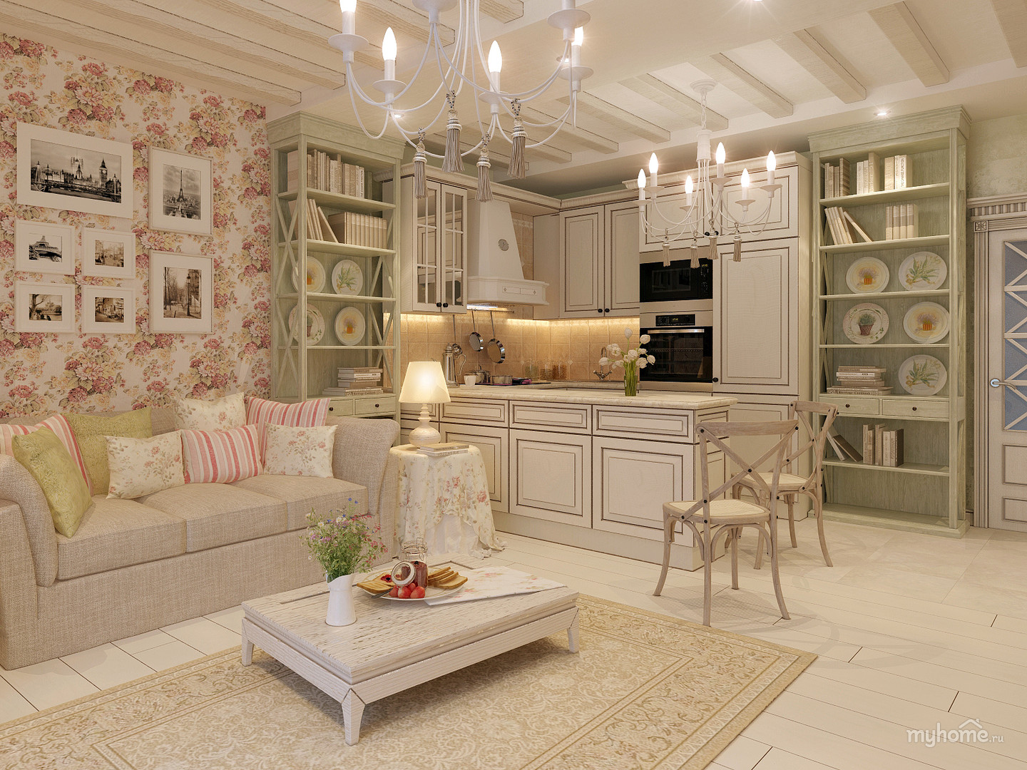 In the style of shabby make a living room and bedroom. Experienced designers do not recommend decorating the entire living space in shabby chic, it will be very expensive or one mistake to turn the space into a home for Barbie.