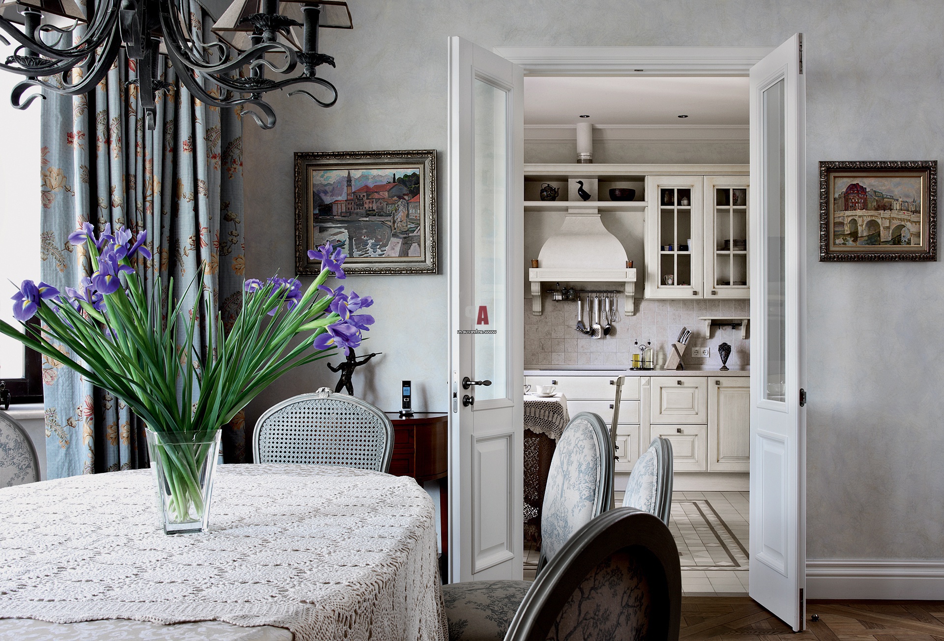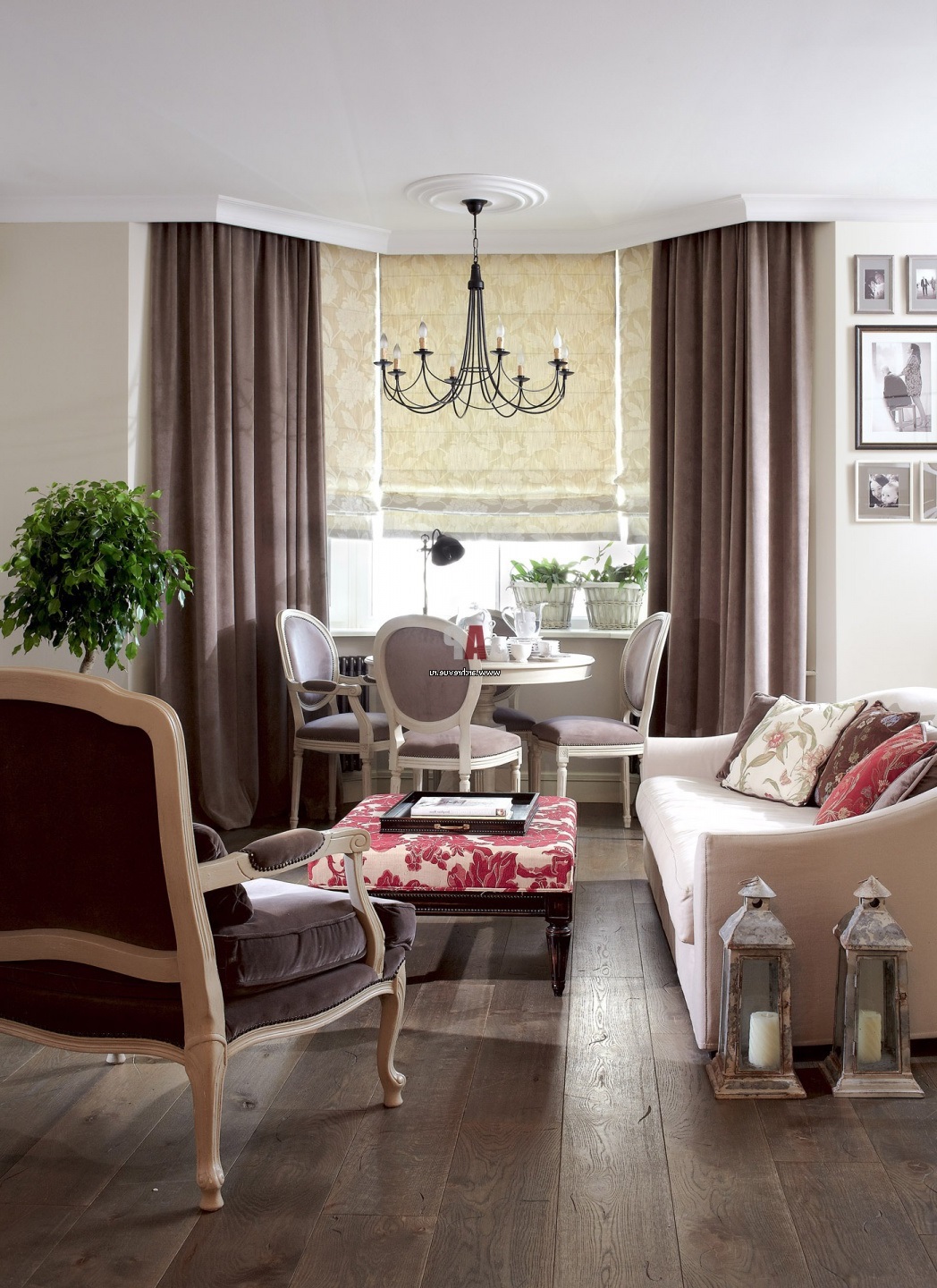 - Special attention should be paid to the decor of the room, with its help the effect of luxury and prosperity is created. These are ancient dinner sets, vases, fabrics, paintings, curtains, caskets, candlesticks.