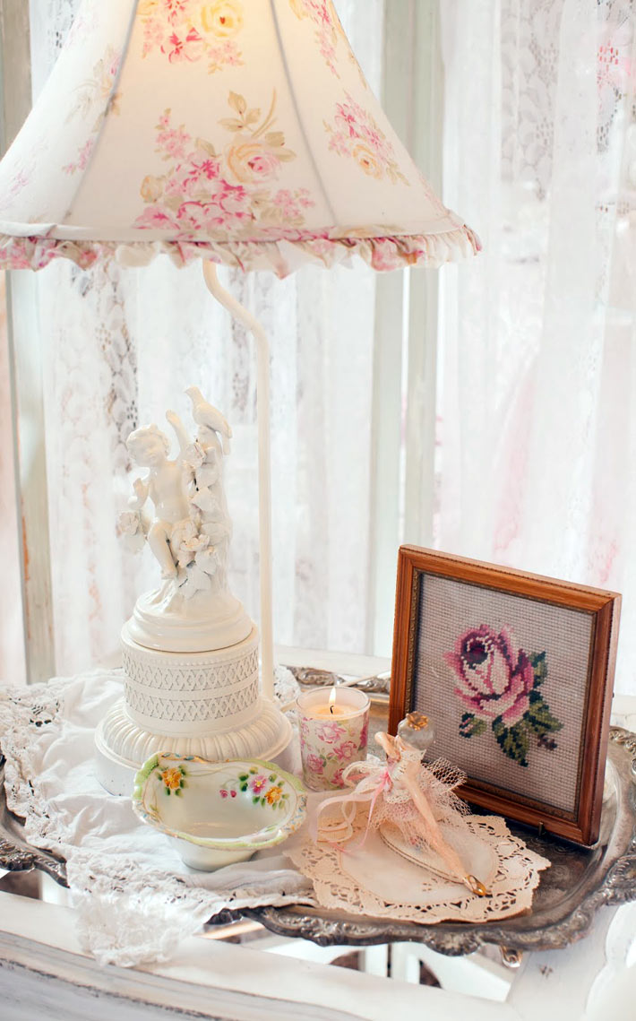 - If desired, skip the strip of lace along the bottom of the lampshade, decorate with a ribbon.