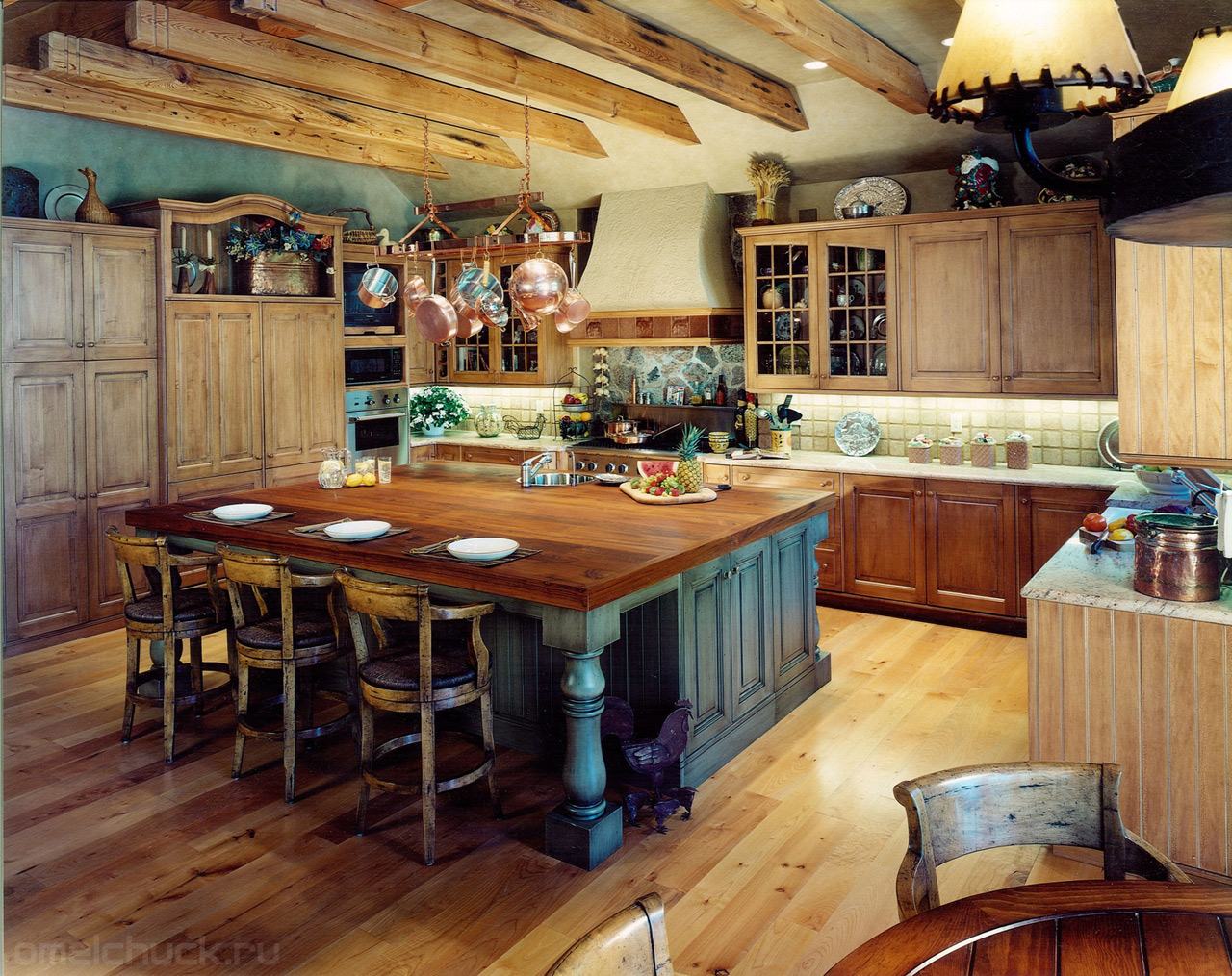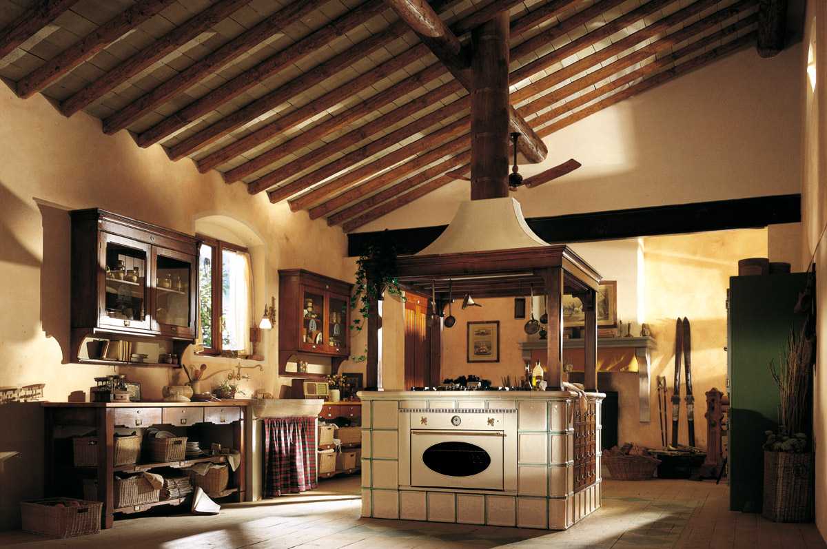 The Italian country style in the interior involves a set of artificially aged wood, polished or with a layer of varnish. Pistachio and cream tones, an abundance of arches and stone prevail.