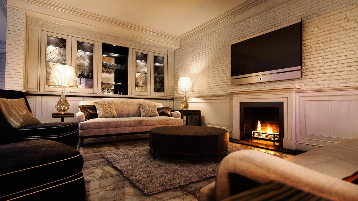 Since the main function of the electric fireplace is to create coziness in the interior, it is usually placed in a room where households, guests usually gather and it is just pleasant to spend time in the living room.