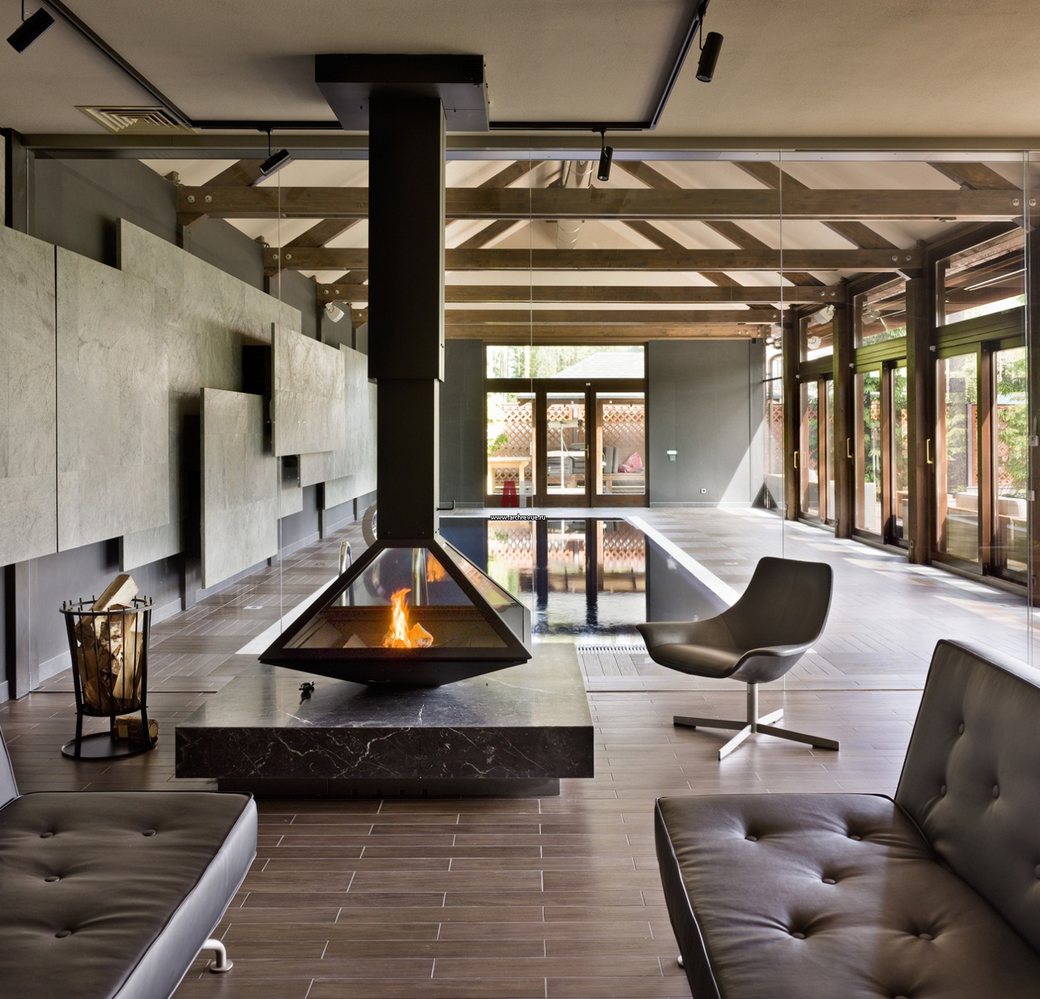 For rooms with an area of more than 25 m, it is already possible to consider more overall models with various layout options. Large electric fireplaces perfectly complement the spacious living rooms with high ceilings and a large area.