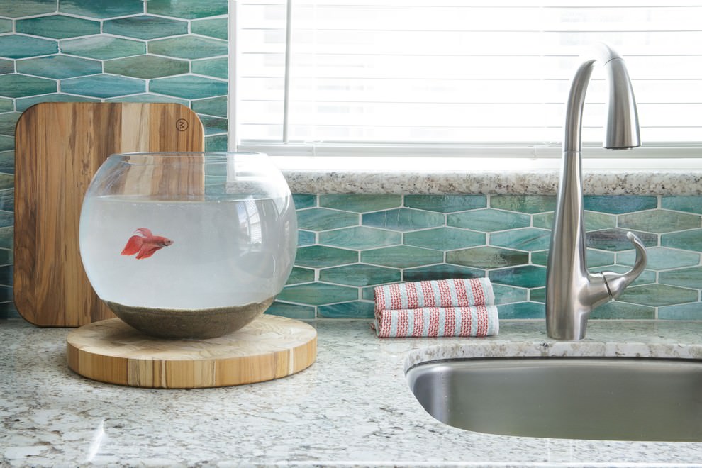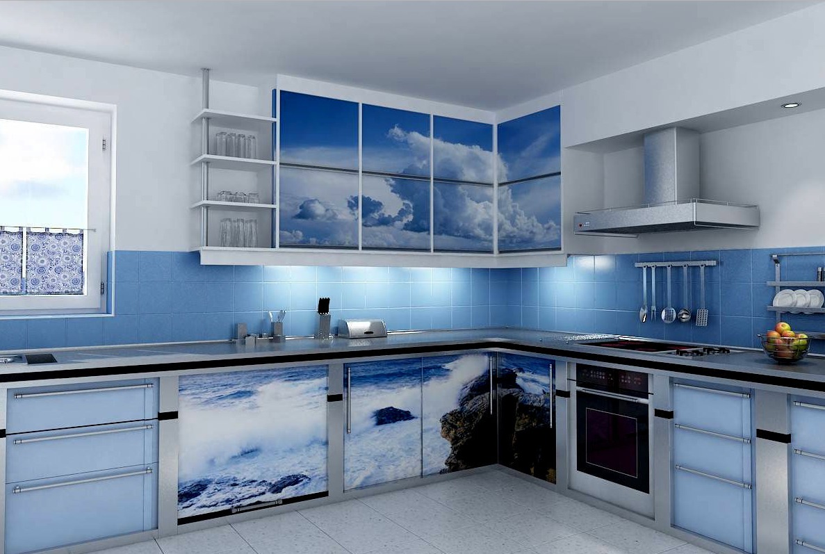 - A marine-style kitchen apron can be made a bright highlight by choosing a bright blue mosaic tile for its decoration.