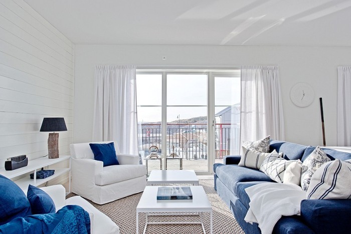 Making a living room in a marine style, it is enough to apply the following solutions: