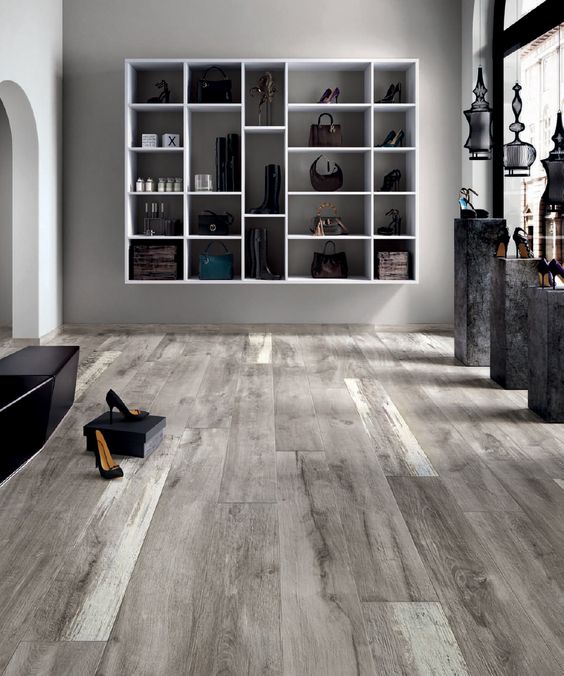The gray floor itself is not an accent due to the neutrality of the color itself, it is as if it offers to look at other objects of the environment: walls, windows, furniture, etc.