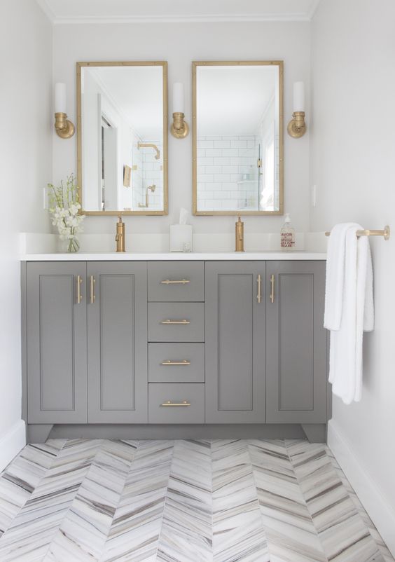 A combination of a gray floor with blue or blue walls is acceptable, since all these cool colors combine well with each other.