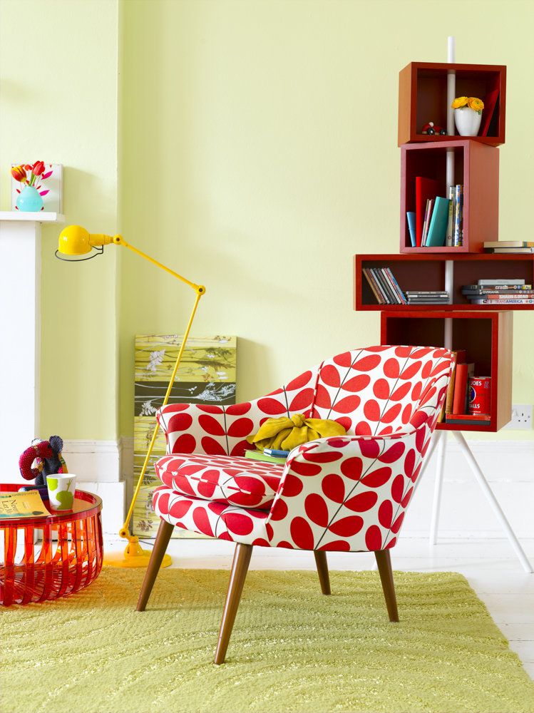 The warm palette is well perceived in the design, made for ethnic, retro styles and country. Warming ability will be needed to create a special homely atmosphere, especially if it is yellow in the interior of a living room, kitchen or dining room. This range is especially interesting in the addition of orange, green and terracotta shades.