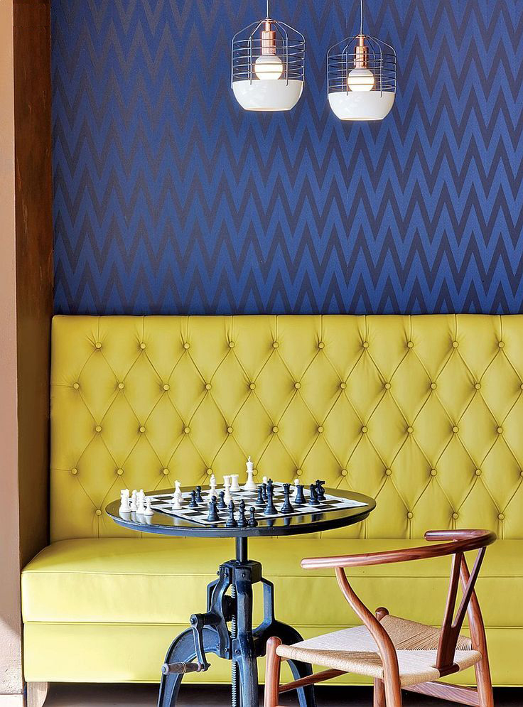 The yellowish shades in most interiors are perfectly combined with dark contrasting tones: