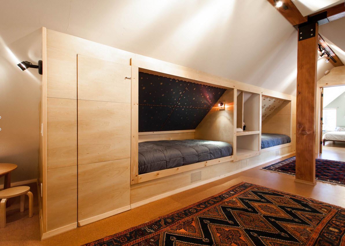Best when equipped with this the rooms consult with an experienced craftsman, use only quality materials. Well-designed technical points make it possible to create further and create beautiful attic design.