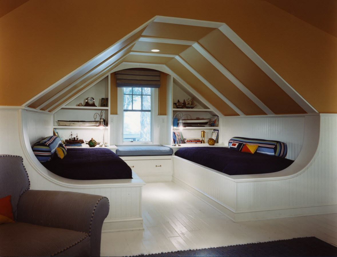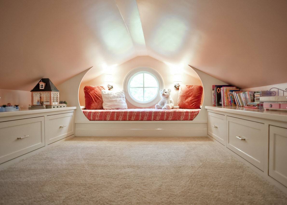 Careful study of the attic design will even turn a small room into a comfortable room.
