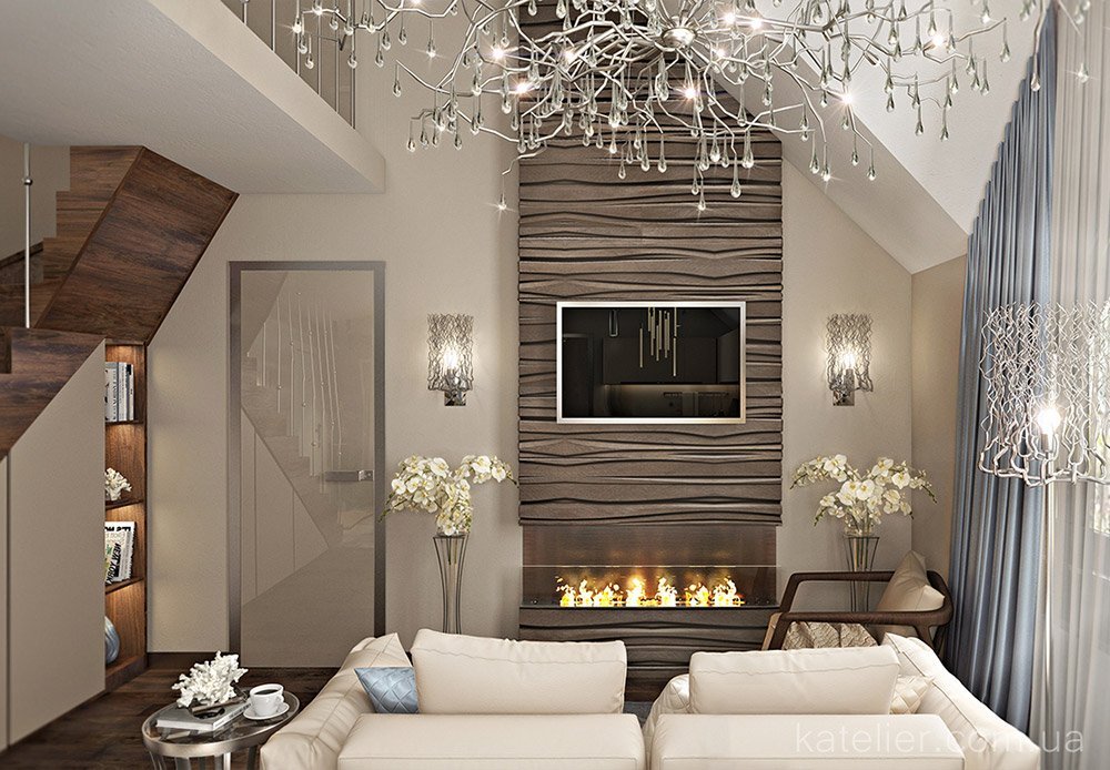 This modern interior design is characterized by neutral background colors (shades of gray, brown, sand, beige), which enable a person to relax from the rhythm of large cities.