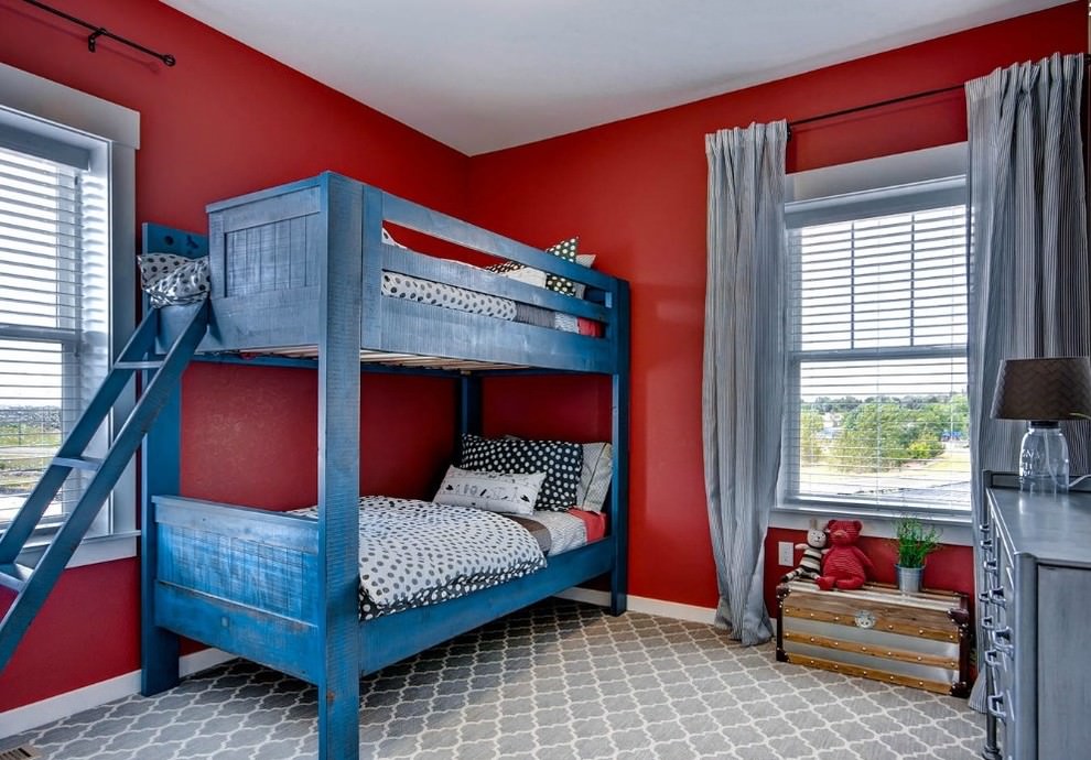In the bedroom, red is suitable for highlighting the accent wall behind the head of the bed