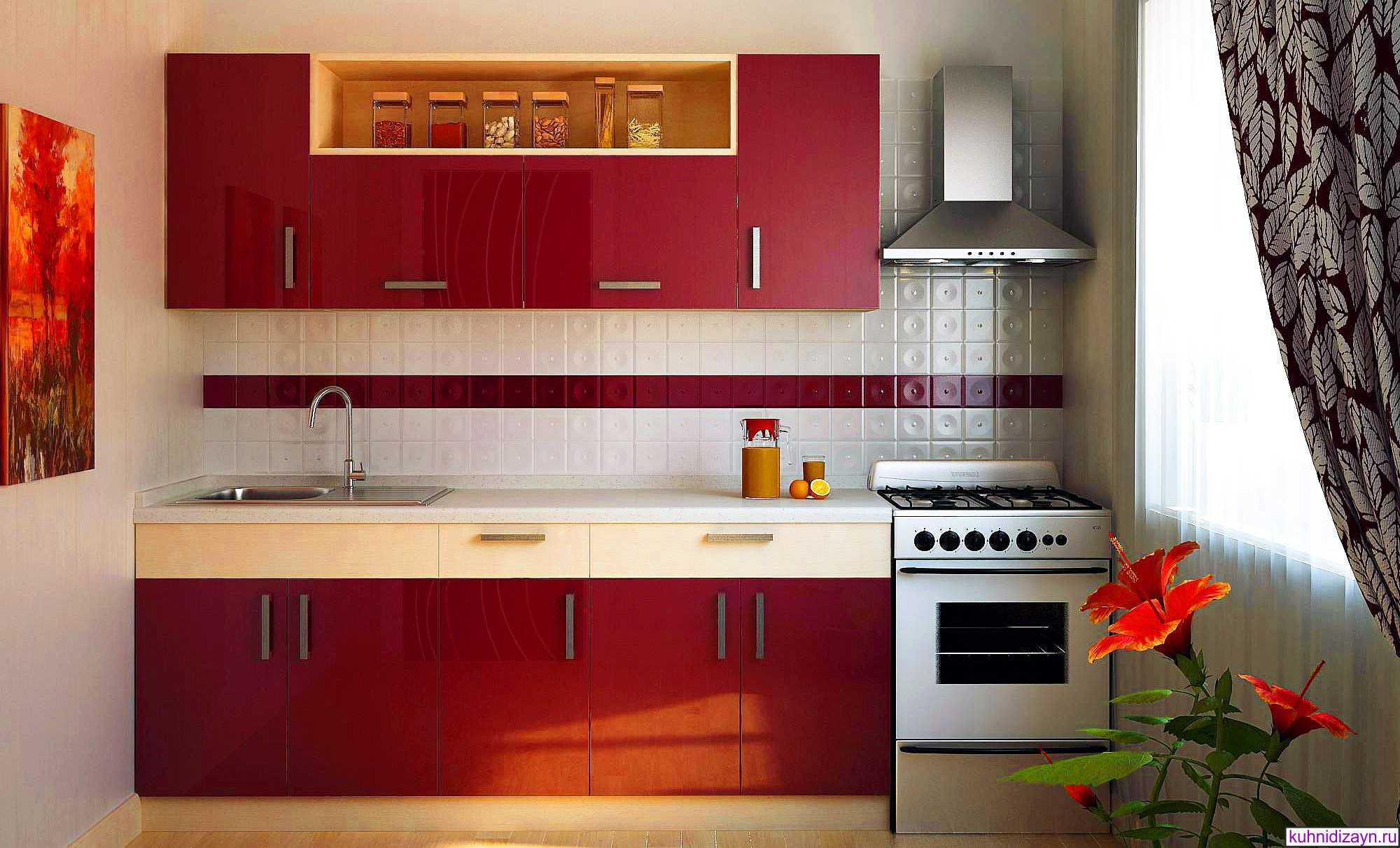 Dark red color in the interior of the kitchen