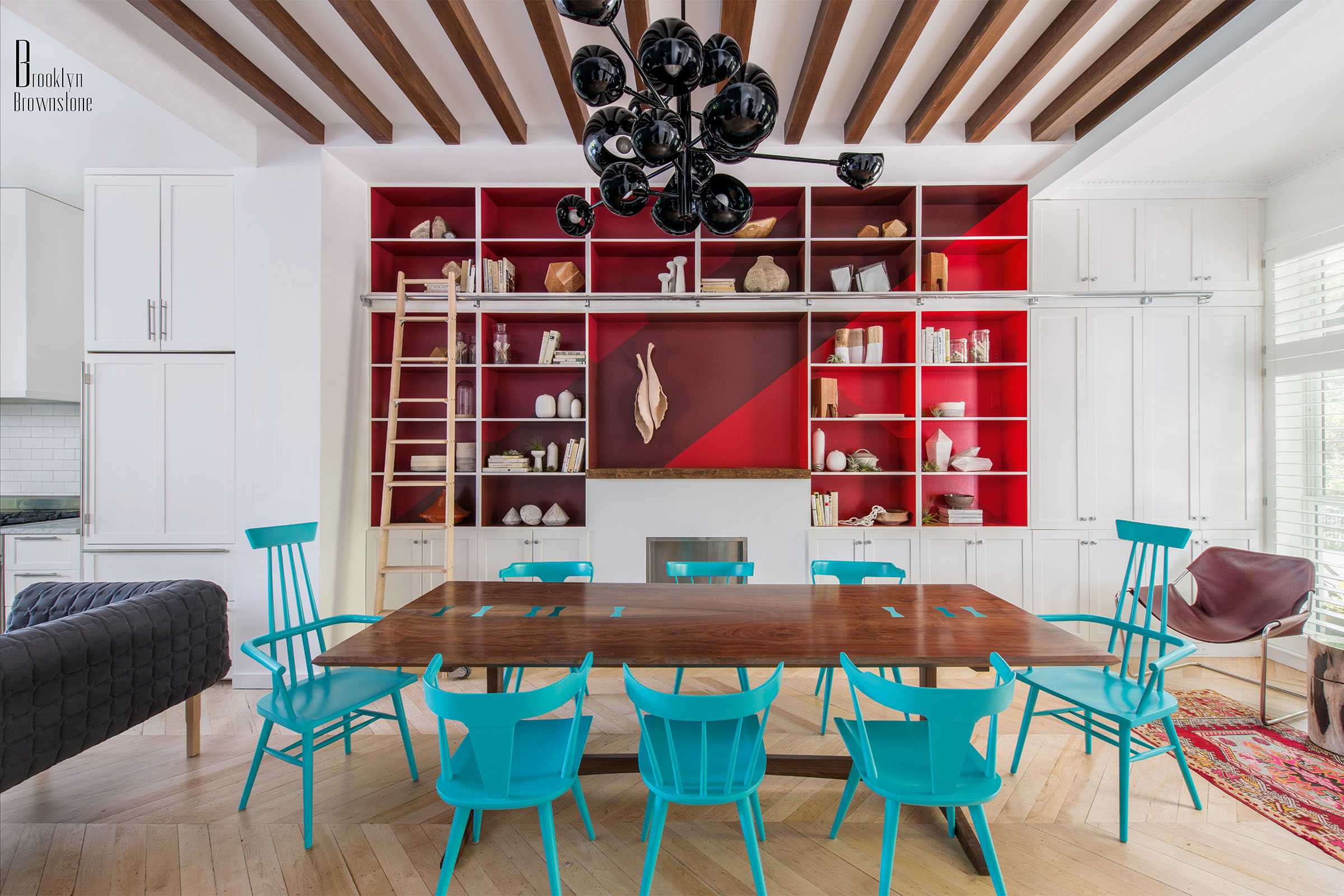Twenty years ago, the combination of red and green was considered the top of bad taste, bad manners. But modern designers, drawing on examples of the natural world around us (red flowers on a green stem), boldly introduce this collaboration everywhere. Since the 2000s, the mix of colors has become a part of fashion: young people are increasingly choosing costumes with these colors. Interior designers did not lag behind fashion. So red and turquoise successfully combine in fusion style.