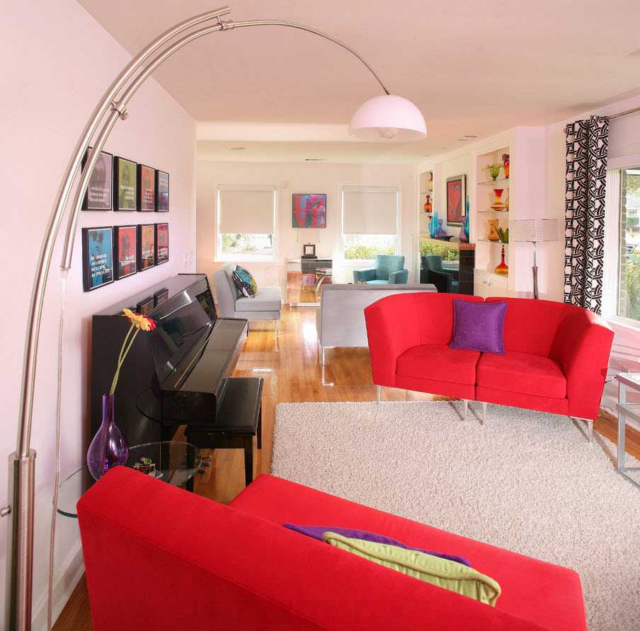 Red is a fairly saturated and powerful color. It is strictly contraindicated for use in small rooms. He will make them visually even smaller. You can not use red as a background image, otherwise the room will be perceived cheaply and not stylishly. Red is best used as a spectacular accent. For a perfect combination, it is worth choosing related or contrast-related colors to red when creating a combination for the overall design of the space.