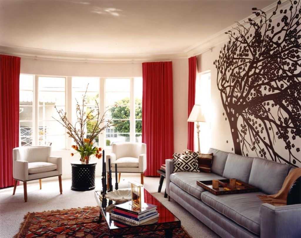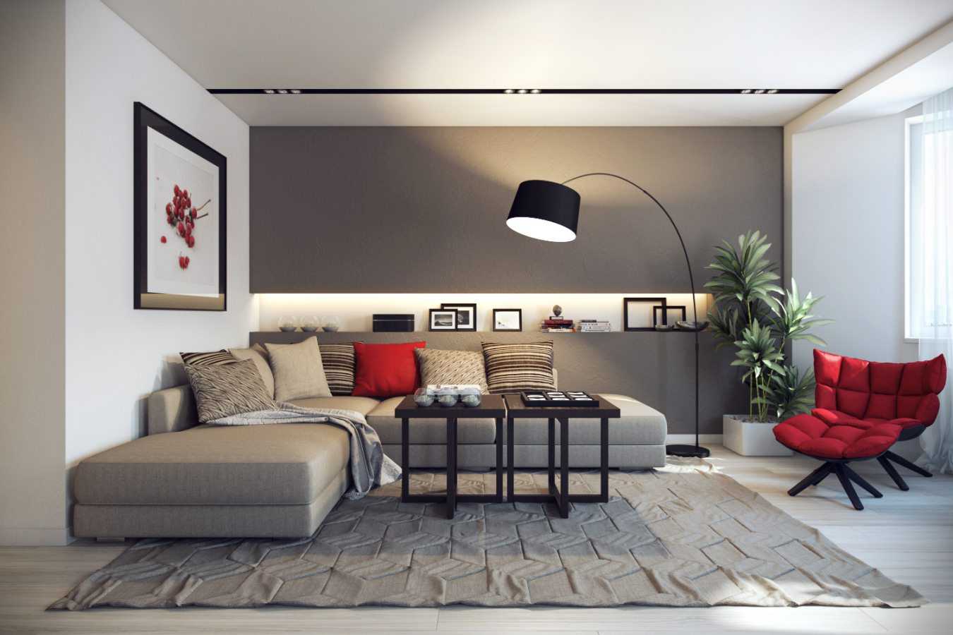 Red color in the interior of the living room