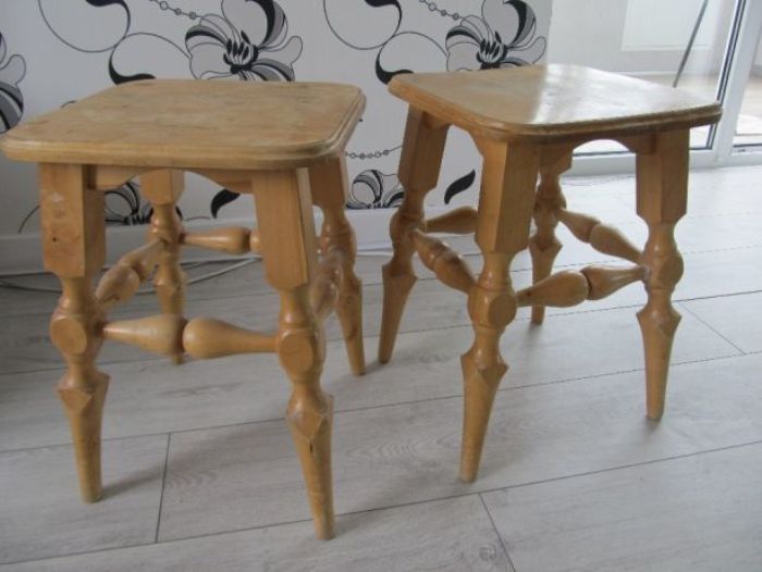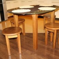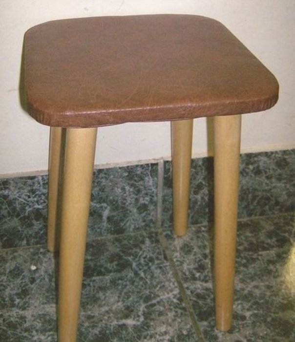 The stool also gives a flight of fancy for creative solutions. In work do not forget about safety measures. Work carefully, take your time, wear gloves. Then at work there will be no cuts and splintering. Stools can be quickly removed and decomposed, stacking on top of each other. They can be stored in the pantry when not in use. The most affordable option is a folding stool. The best models look very dignified and elegant. A soft stool with upholstery is very convenient. The materials are very diverse. Mostly fabric or leatherette. When washing, you can easily handle a damp cloth. The price is small, they can always be bought with a margin.